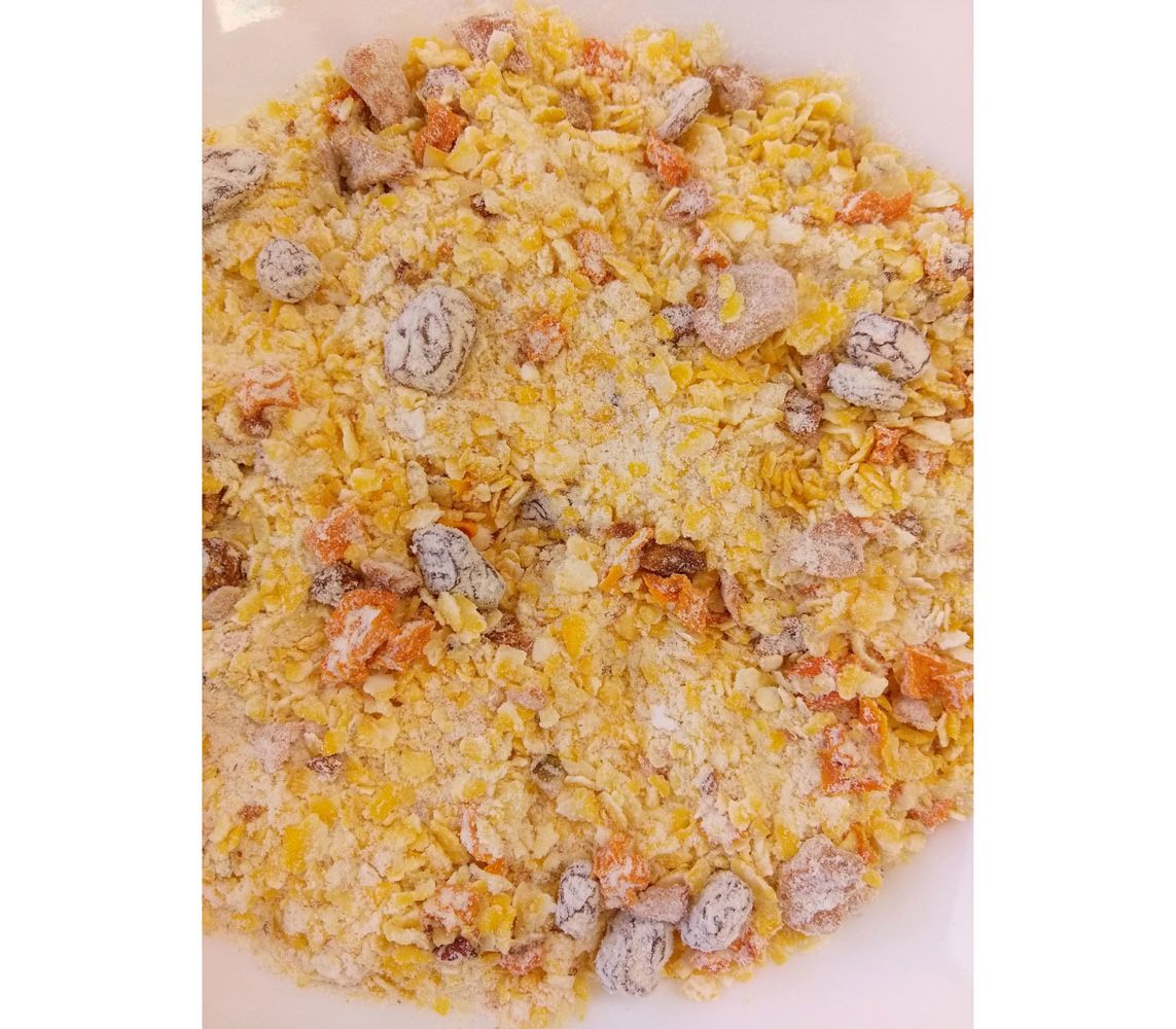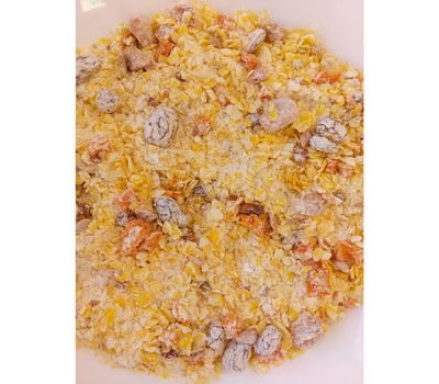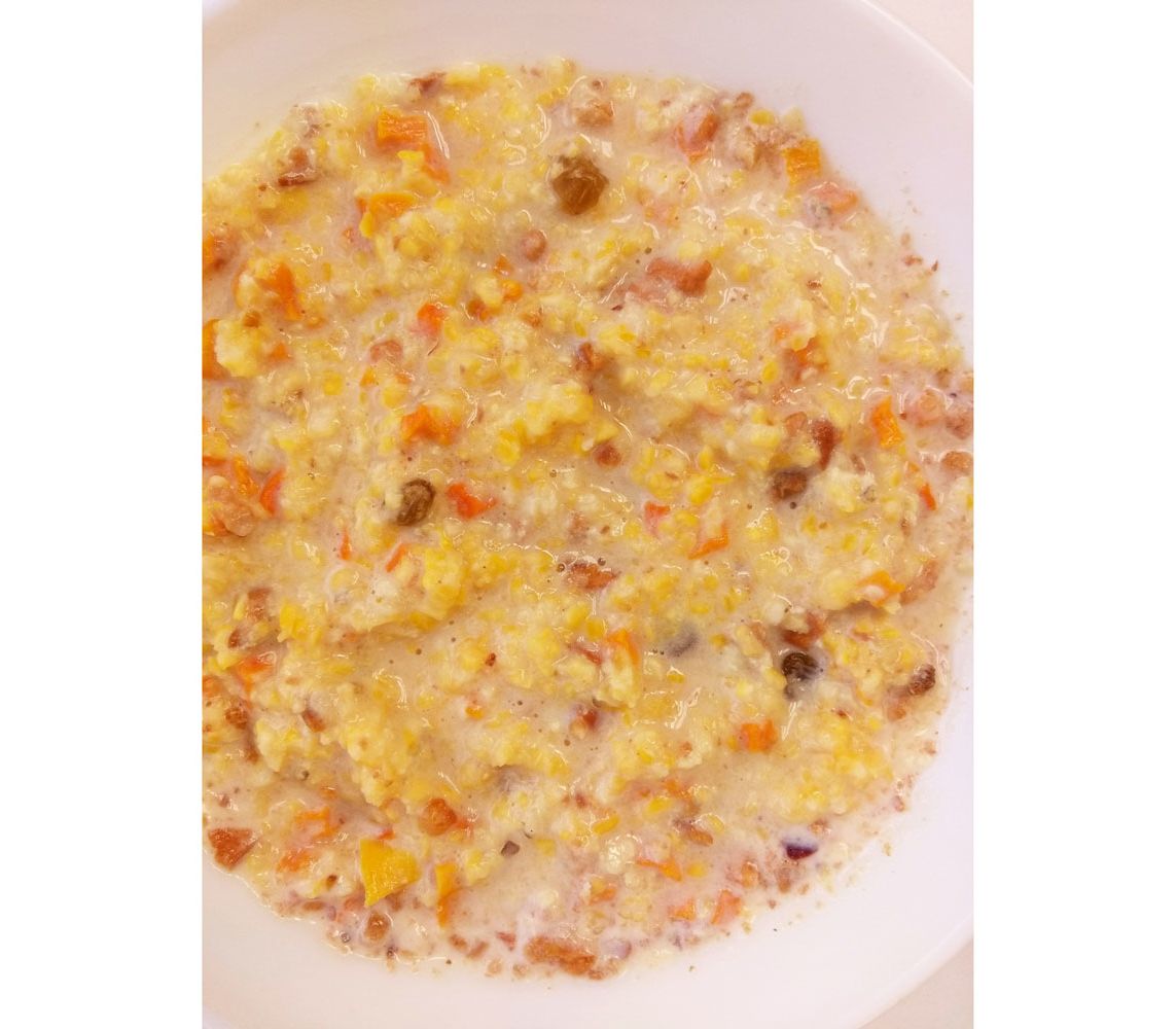 Состав: кукуруза, тыква, сухое молоко, яблоко, изюм, абрикос, сахар.