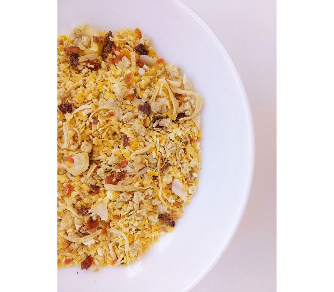 Приготовлена из сушеных продуктов, сохранивших все вкусовые качества натуральных. Не используются усилители вкуса и консерванты. Сушеная еда очень мало весит, так как при сушке теряет до 95% своего веса. Идеально подходит для приготовления еды во время путешествий и экспедиций. Нужно лишь добавить кипяток, перемешать - и обед готов.