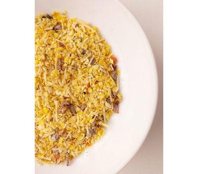 Пищевая ценность порции: белки – 14.3 г, жиры – 8.4 г, углеводы – 50.0 г