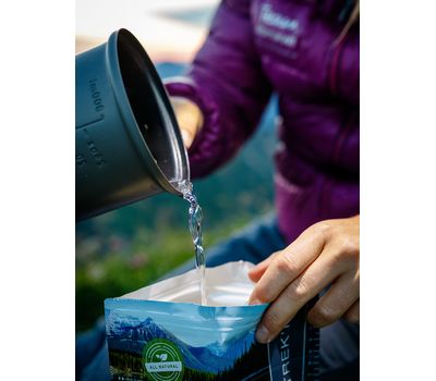 Швейцарские сублиматы Trek’n Eat — это натуральная еда, которую очень легко готовить. Просто залейте в пакет кипяток, размешайте и подождите 10 минут, пока вода впитается.
