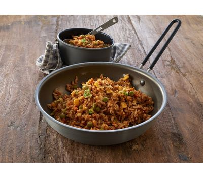 Сублимированная туристическая еда «Джамбалайя с овощами». Готовится на основе длиннозерного риса с ароматной комбинацией пряностей и трав. Это традиционное блюдо креольской кухни, кулинарной столицей джамбалайи считается Новый Орлеан. Теперь любители активного отдыха могут наслаждаться экзотическим вкусом этого блюда в любой точке земного шара.