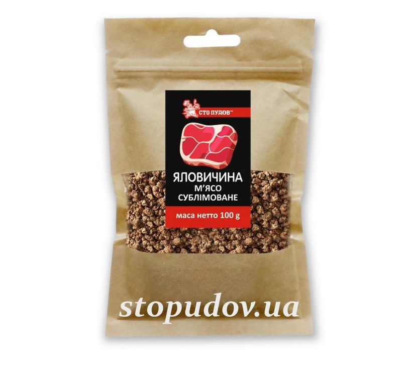 Сублимированная туристическая еда для походов. Состоит из: говядина сушеная дробленая. Блюдо изготовлено методом сушки натуральных продуктов, используется пищевая добавка E320, которая необходима для предотвращения окисления и прогорклости продуктов питания.