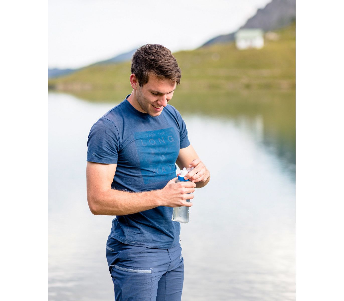 Походный фильтр Katadyn BeFree очень простой и удобный в использовании. Пустая фляга в сложенном состоянии легко помещается в небольшой карман.