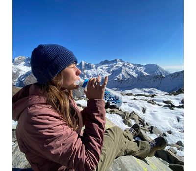 Вода очищается, проходя сквозь половолоконный картридж, вкрученный в мягкую флягу HydraPak.