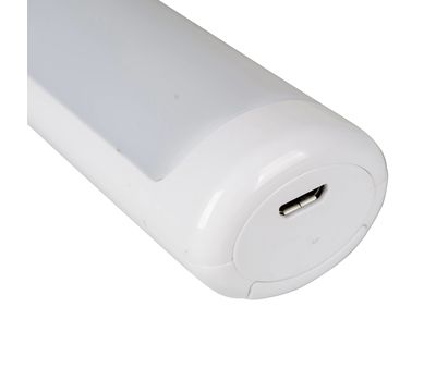 Фонарь-лампа имеет два режима работы: режим включения от датчика движения или режим постоянного освещения. Рассеиватель белого цвета создает мягкое, приятное для глаз освещение. Встроенного аккумулятора хватит на 6 часов работы, а зарядка происходит от стандартного microUSB кабеля, который есть в комплекте. Для процесса зарядки фонарь-лампа снимается со стационарного крепления.
