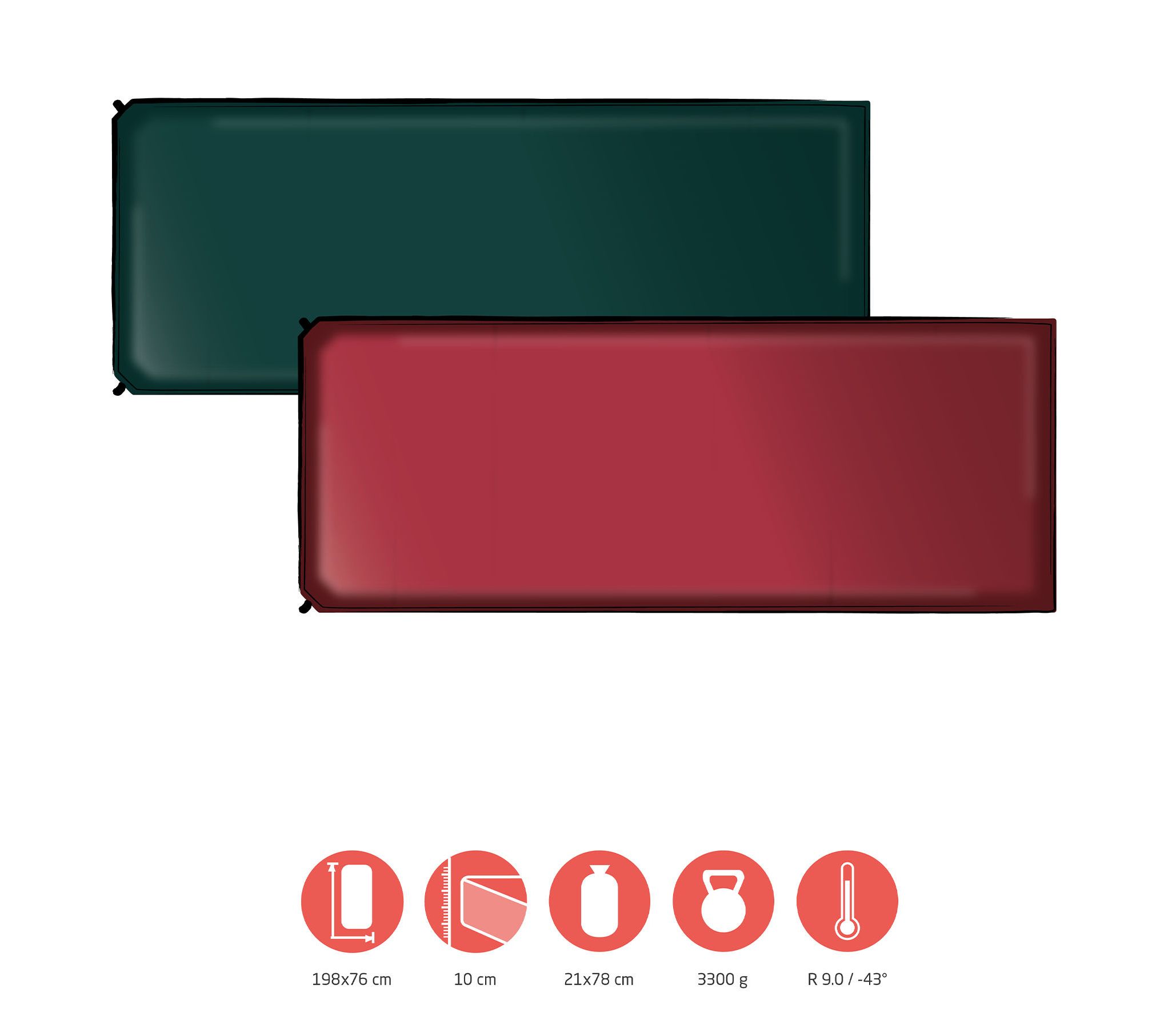 - Самонадувная конструкция обеспечивает наивысший уровень термоизоляции на единицу толщины в сравнении с надувными и закрытоячеистыми ковриками.