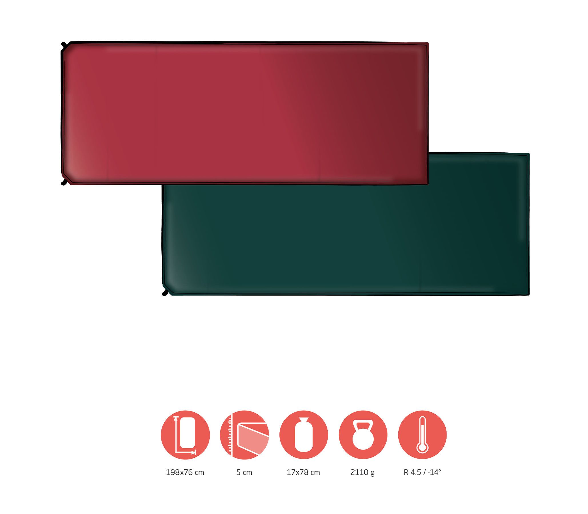 - Самонадувная конструкция обеспечивает наивысший уровень термоизоляции на единицу толщины в сравнении с надувными и закрытоячеистыми ковриками.