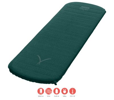 - Самонадувная конструкция обеспечивает наивысший уровень термоизоляции на единицу толщины в сравнении с надувными и закрытоячеистыми ковриками.