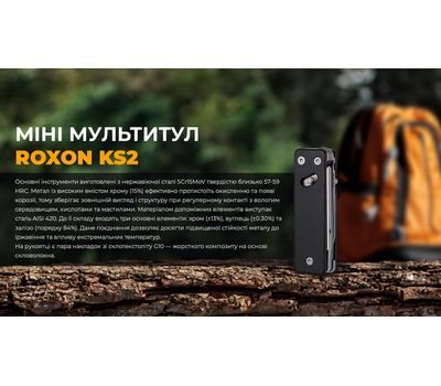 Мультитул Roxon KS2 має розширений функціонал завдяки наявності 14 окремих елементів, тому його можна розглядати не тільки як EDC модель, а й робочий інструмент для виконання професійних завдань. Портативність конструкції — ще одна перевага аксесуара, здатного впоратися з базовими завданнями у польових умовах, наприклад, на пікніку або під час пішої подорожі.