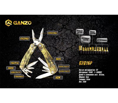 GanzoG2016-p виконує 22 функції. Він буде незамінним помічником, якщо потрібно щось відкрутити, прикрутити, загнути, розігнути, відрізати і багато іншого.