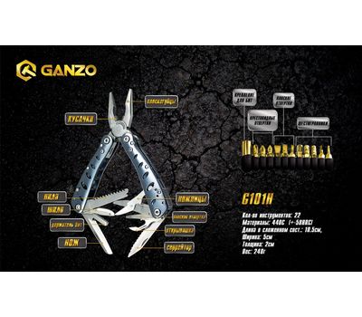Для тих, хто хоче за мінімальну суму придбати максимум функціональності, мультитул Ganzo G101-H стане найбільш підходящим рішенням, так як ця повнорозмірна модель сірого кольору є досить продуманою.