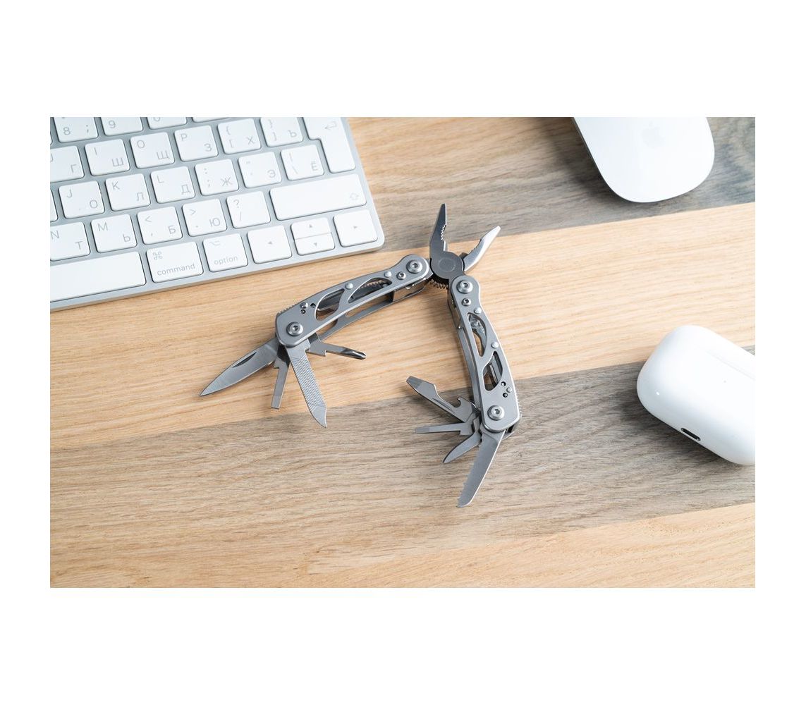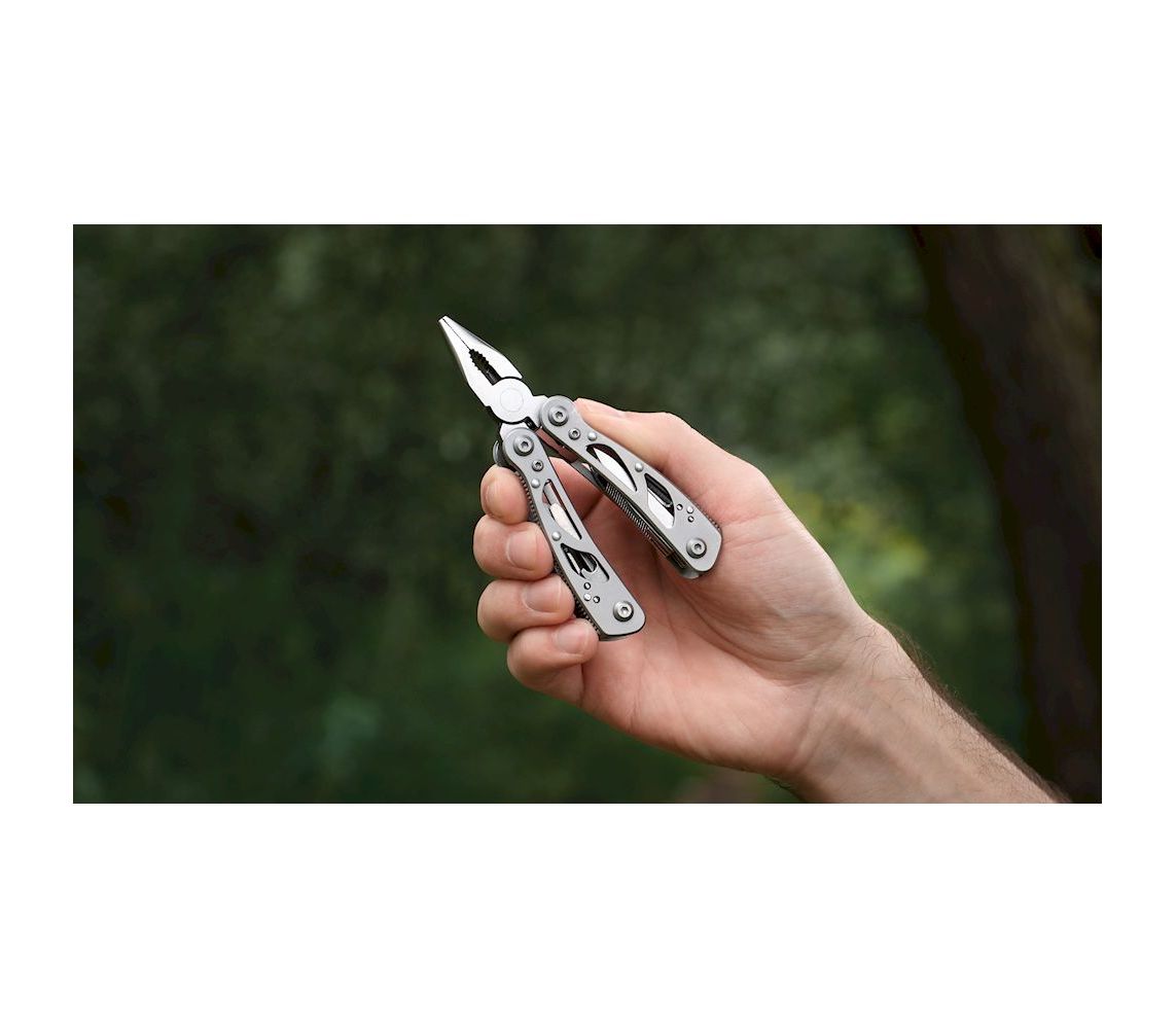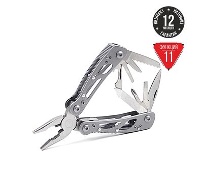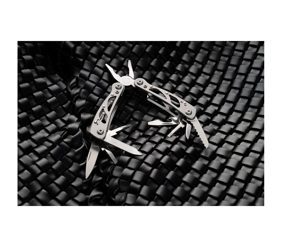 Новинка від компанії Ganzo – складаний мультитул G104 S. Модель G104 S відрізняється компактними розмірами і невеликою масою. Оптимальний набір інструментів дозволяє виконати більшість робіт, які можуть знадобитися в міських умовах. В комплект мультитула G104 S входять наступні інструменти: підпружинені плоскогубці з кусачками, два леза, одне з яких має серейторне заточування, дві плоских і одна хрестоподібна викрутка середнього розміру, шило, невеликий напилок, паз для зняття ізоляції з проводів, відкривачка для пляшок і консервний ніж. Всі інструменти виготовлені з високоякісної сталі 440С, яка має високі експлуатаційні характеристики.