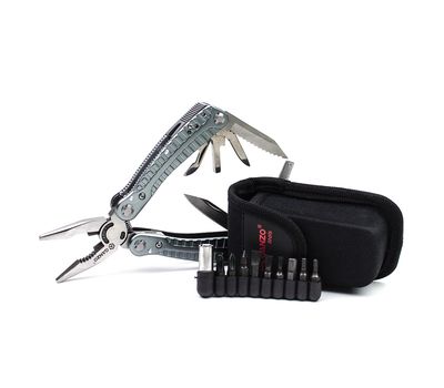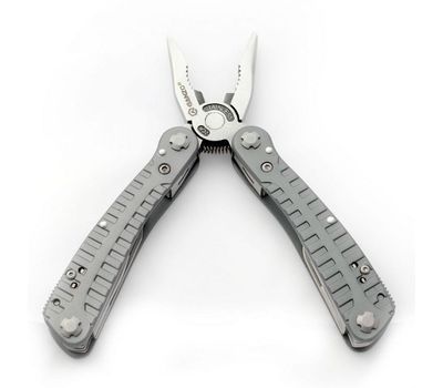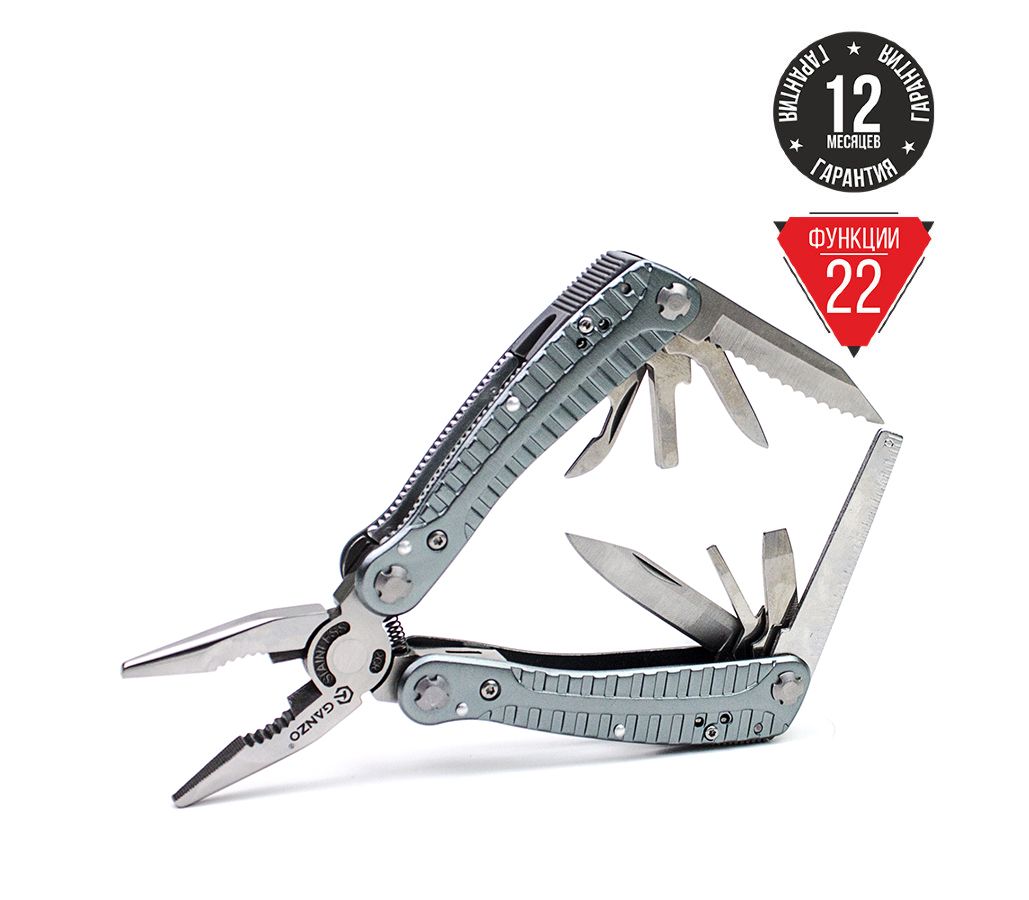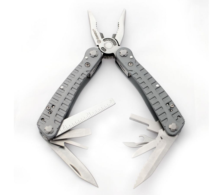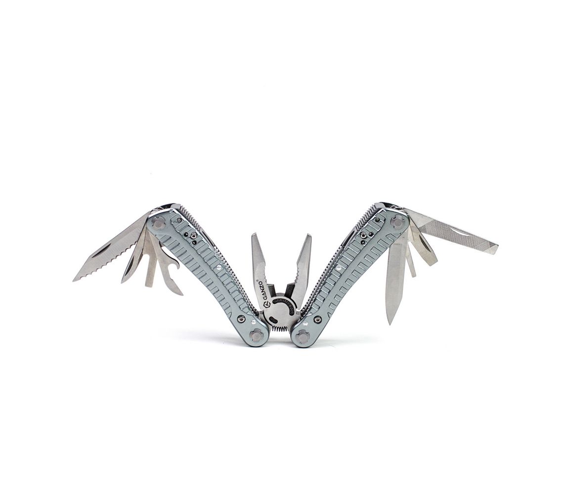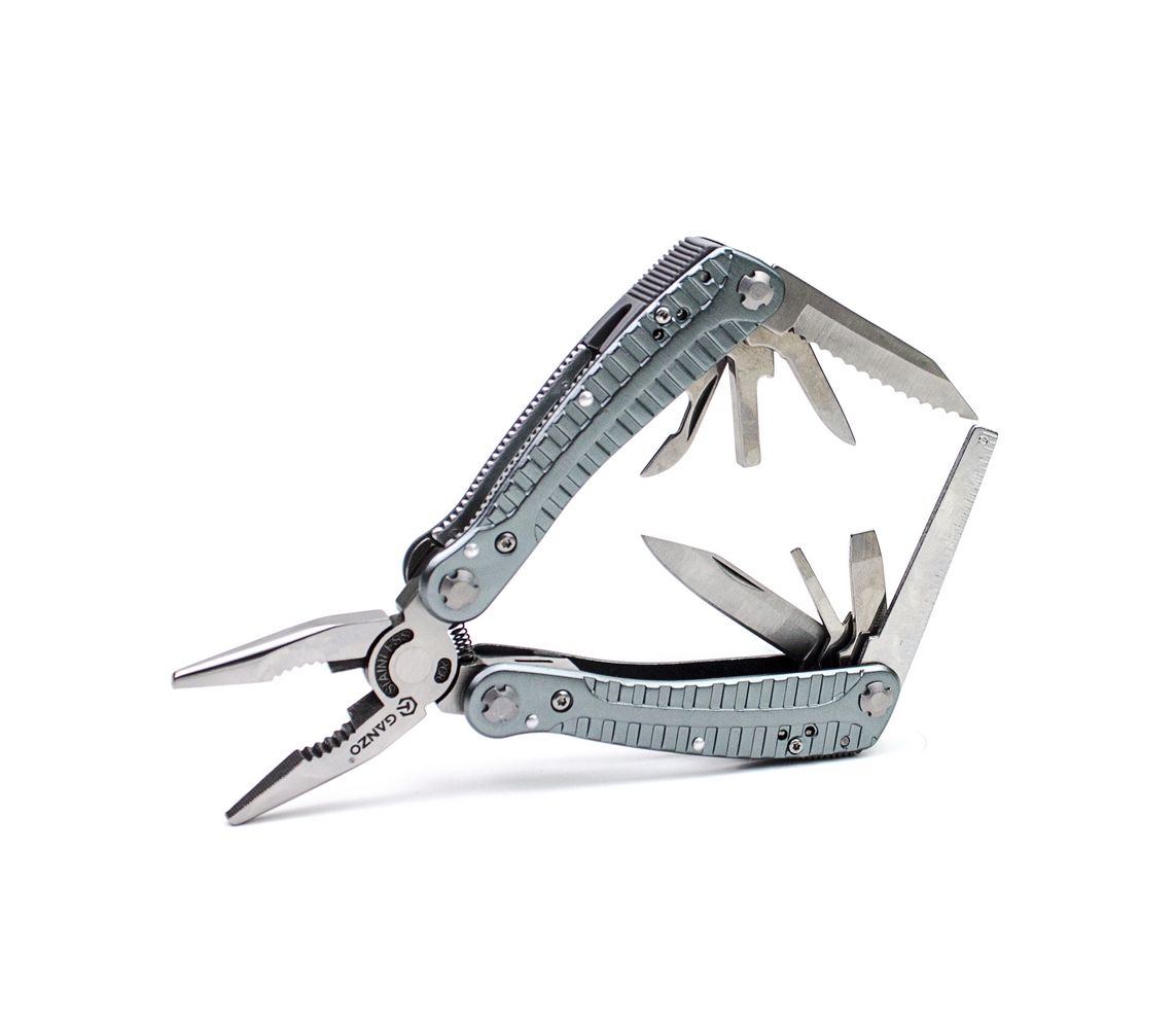 Зручний повнорозмірний мультитул G105 від компанії Ganzo. Великий набір інструментів дозволяє використовувати модель G105 для повноцінного ремонту різноманітної техніки. В комплект мультитула G105 входять наступні інструменти: підпружинені плоскогубці з кусачками, два леза, одне з яких має серейторне заточування, дві плоских викрутки різного розміру, напилок, лінійку, подовжувач для адаптера, консервний ніж.