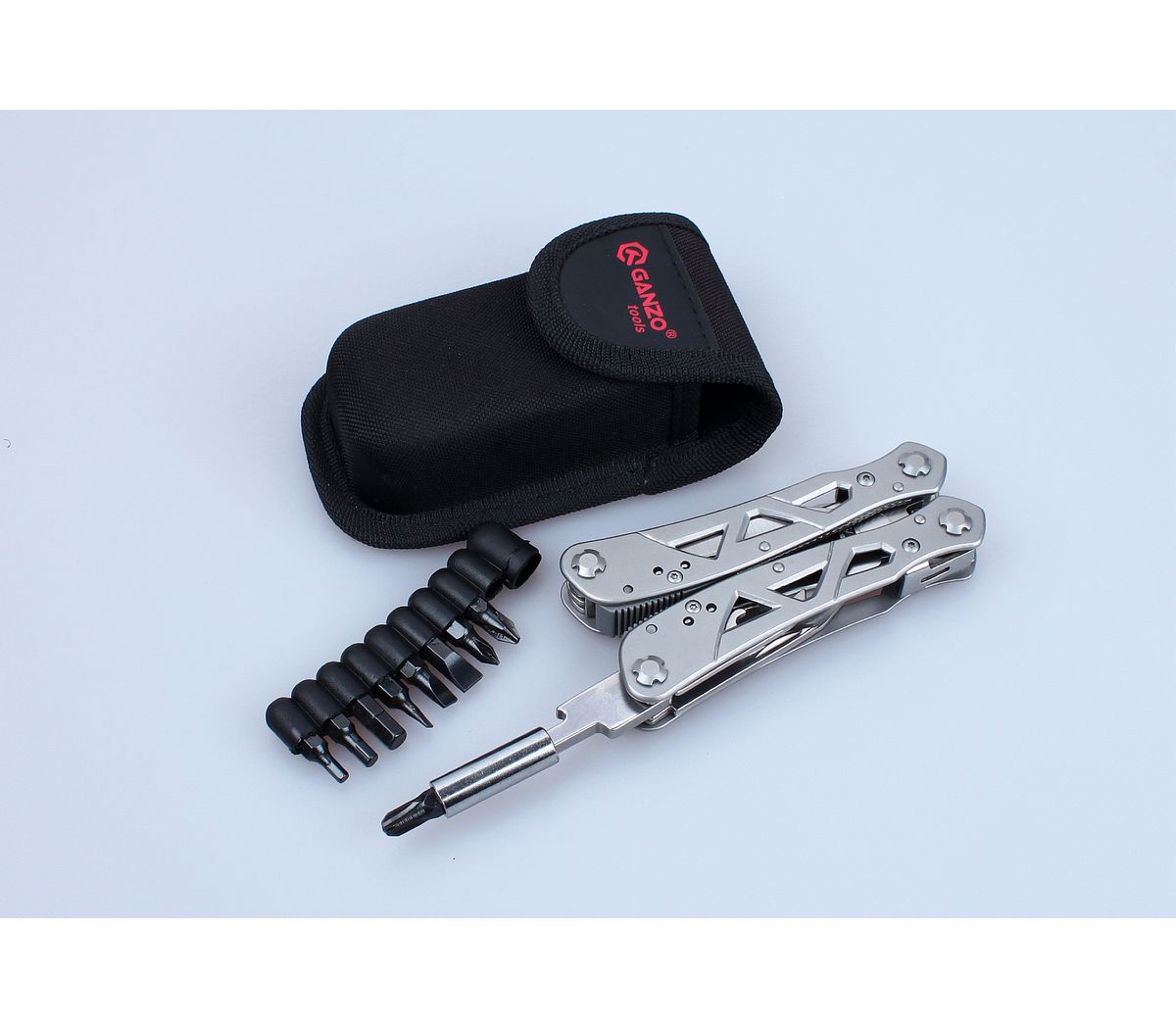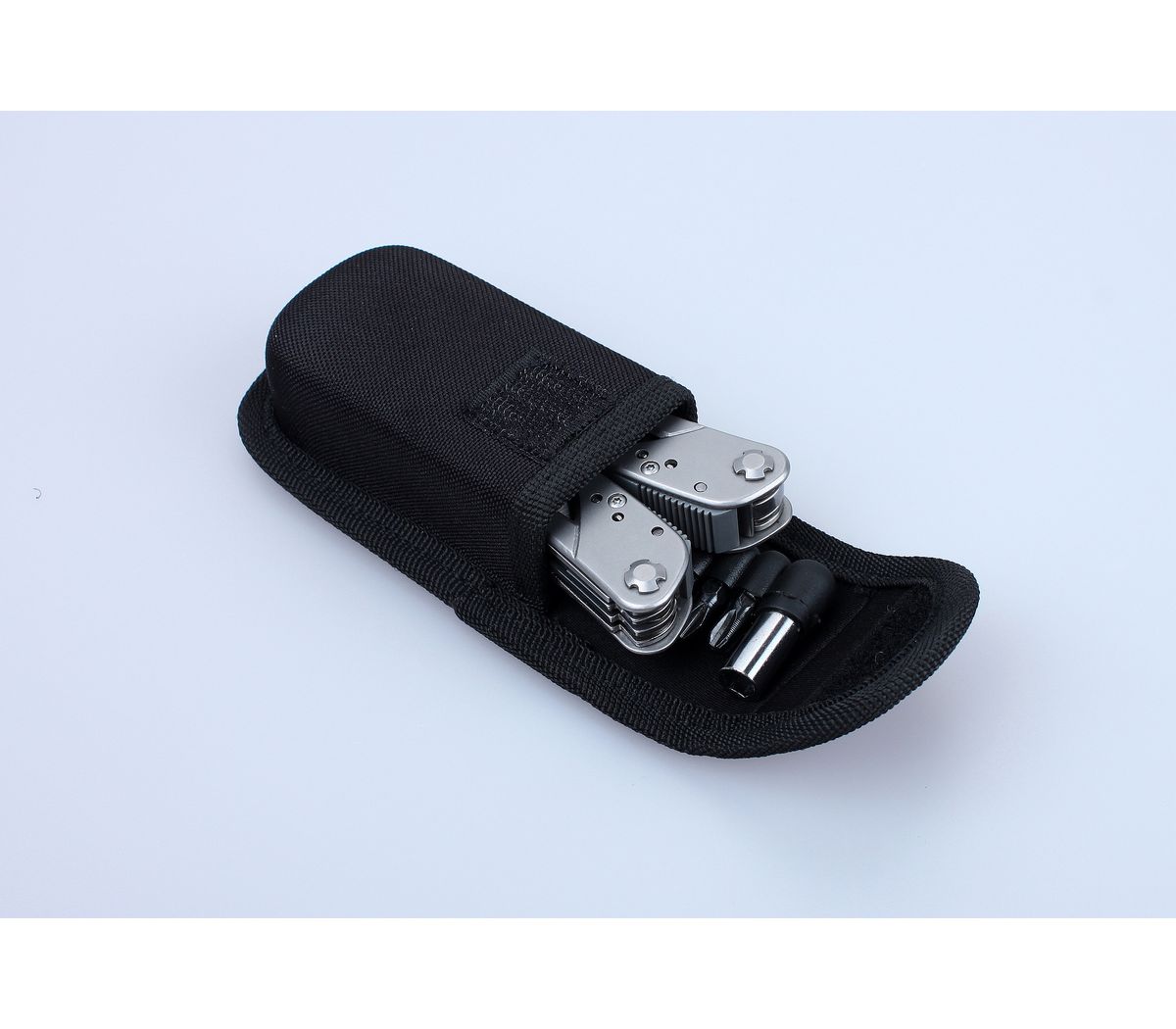 Крім вбудованих інструментів, мультитул володіє цілим комплектом змінних насадок для викрутки. Це дев'ять ять наконечників різного перетину, зібраних разом в одному органайзері. Там же розміщено і перехідник на магнітній основі, службовець для надійної фіксації біт. Мультитул разом з набором бітів зберігається в жорсткому нейлоновому чохлі. Це дуже міцна тканина, витримує серйозні навантаження в експлуатації, яку, до того ж, легко праті при необхідності.