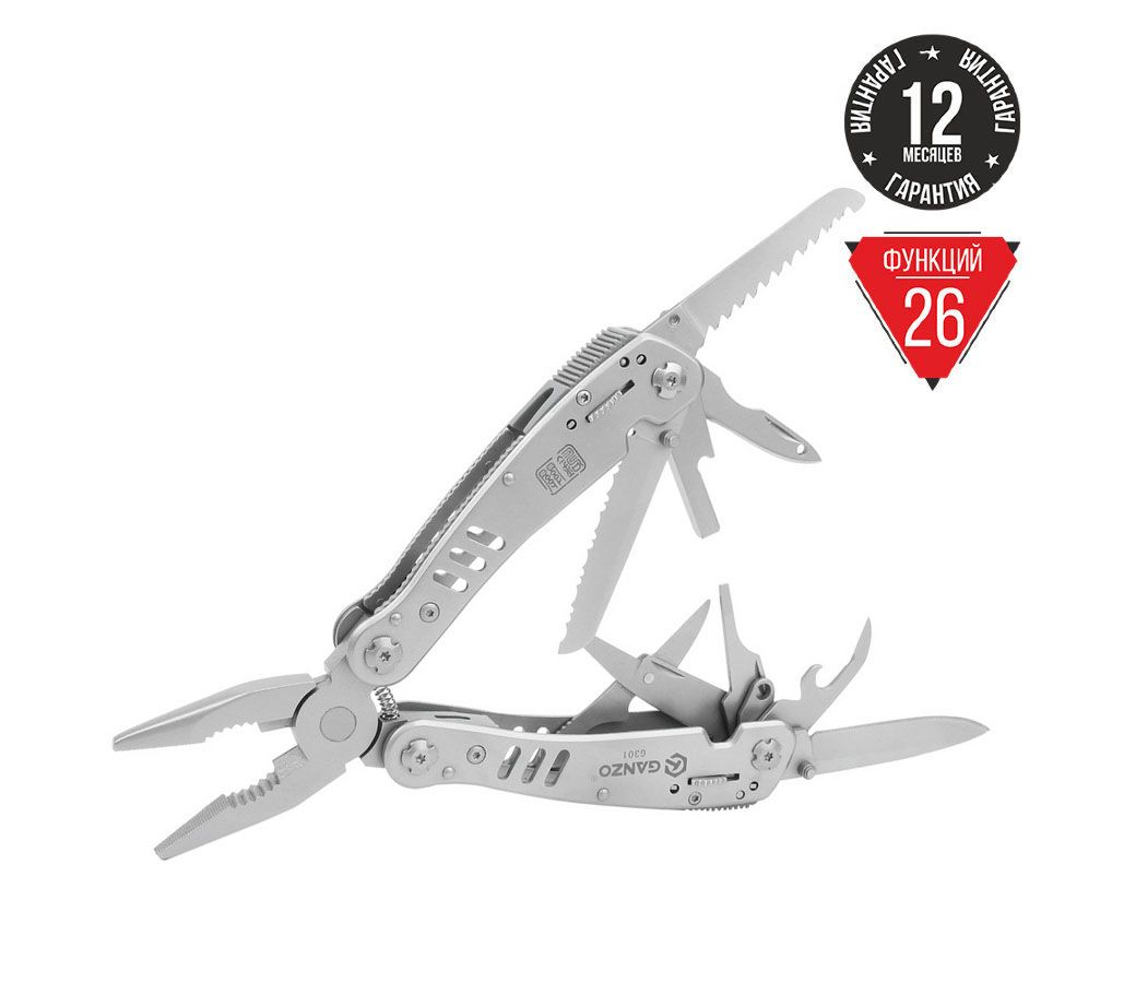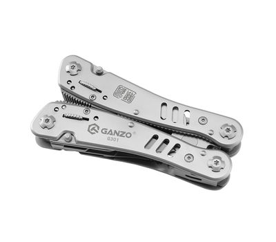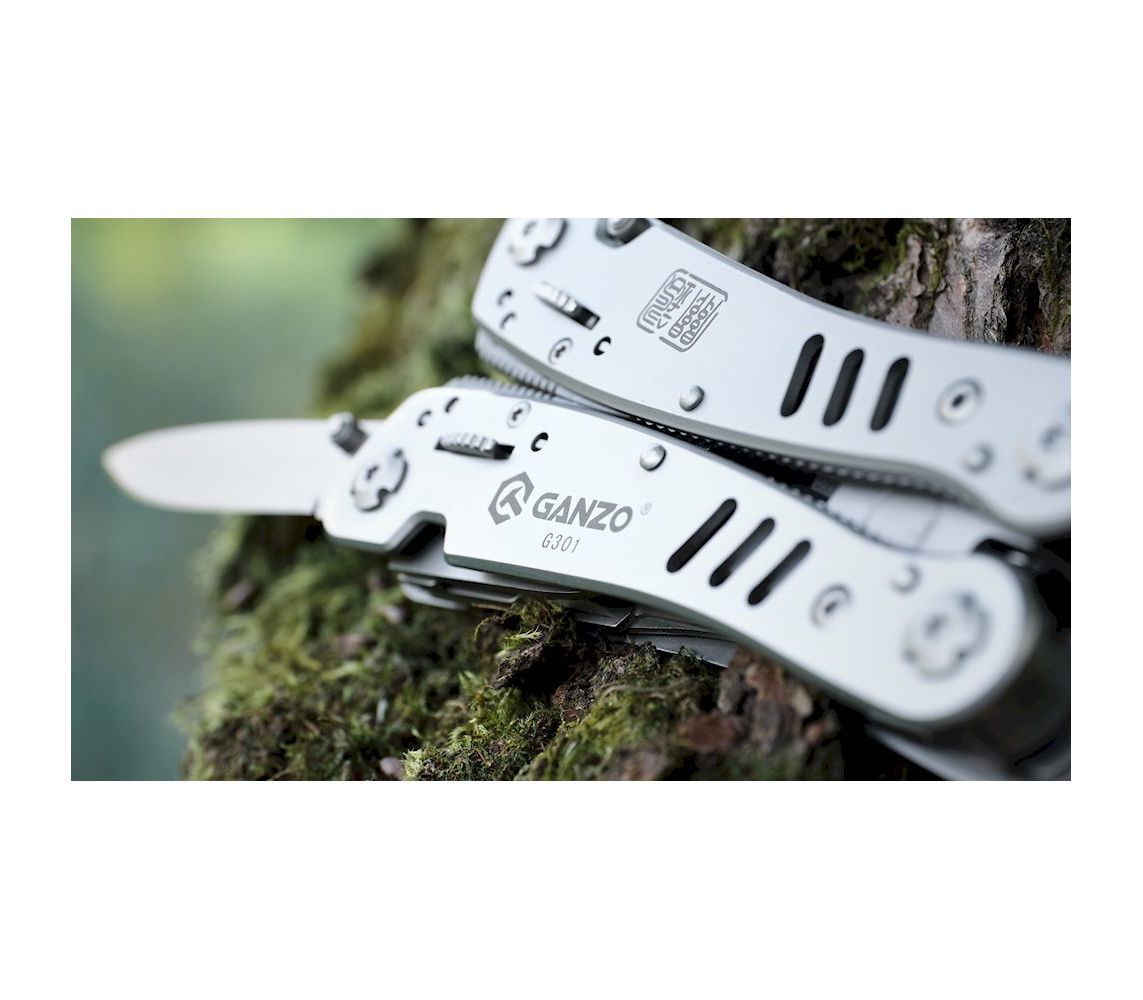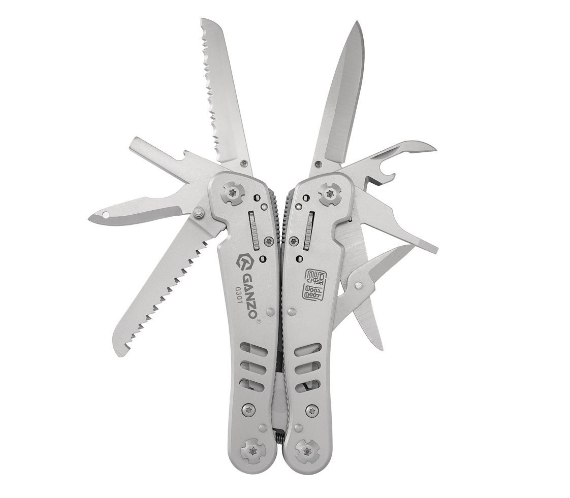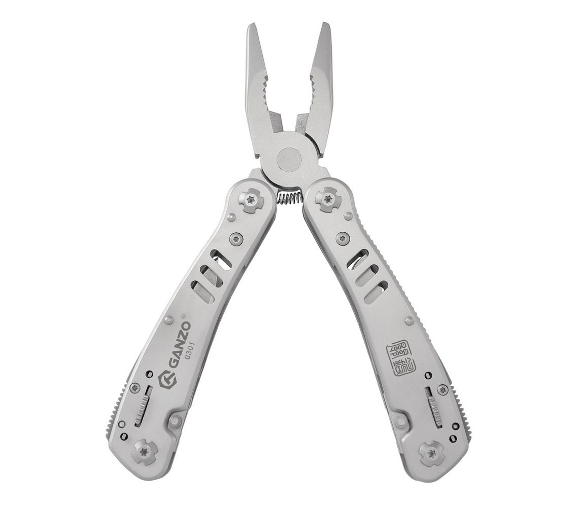 Зручний повнорозмірний мультитул G301 від компанії Ganzo. Великий набір інструментів дозволяє використовувати модель G301 для повноцінного ремонту різноманітної техніки. В комплект мультитула G301 входять наступні інструменти: підпружинені плоскогубці з кусачками, два леза, одне з яких має серейторну заточку, дві плоских викрутки різного розміру, пилу по дереву, ножиці, зенковку, подовжувач для адаптера, консервний ніж.