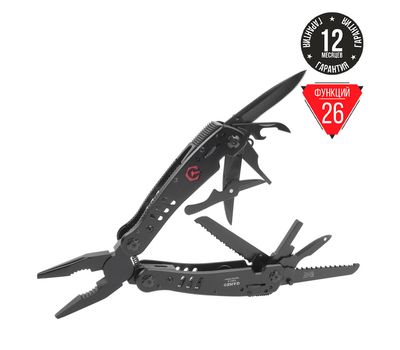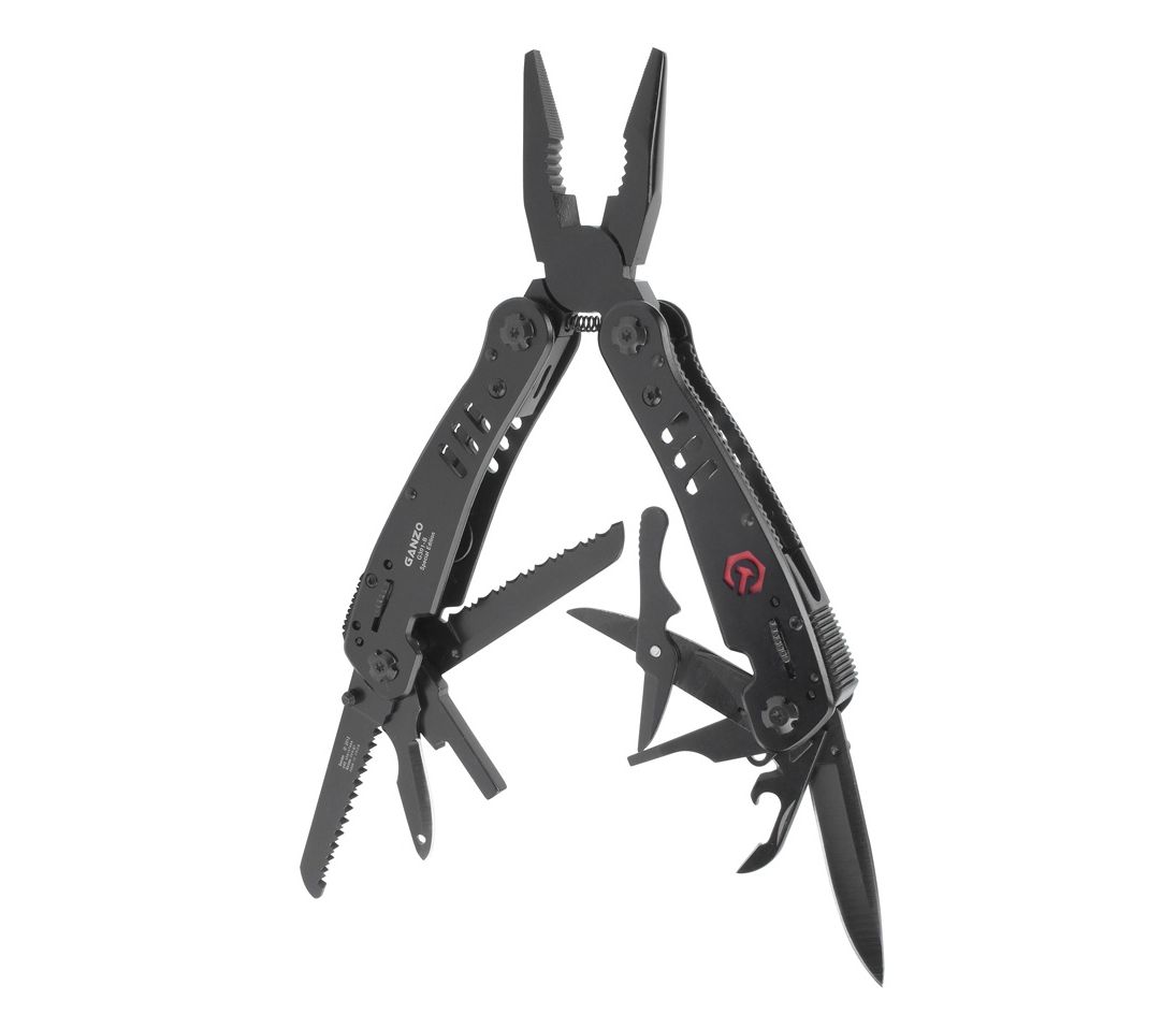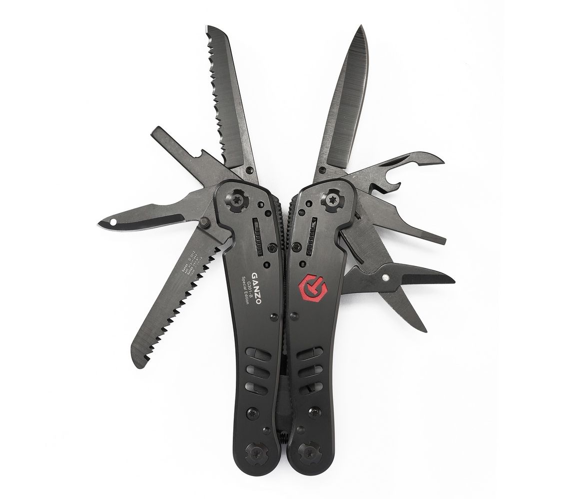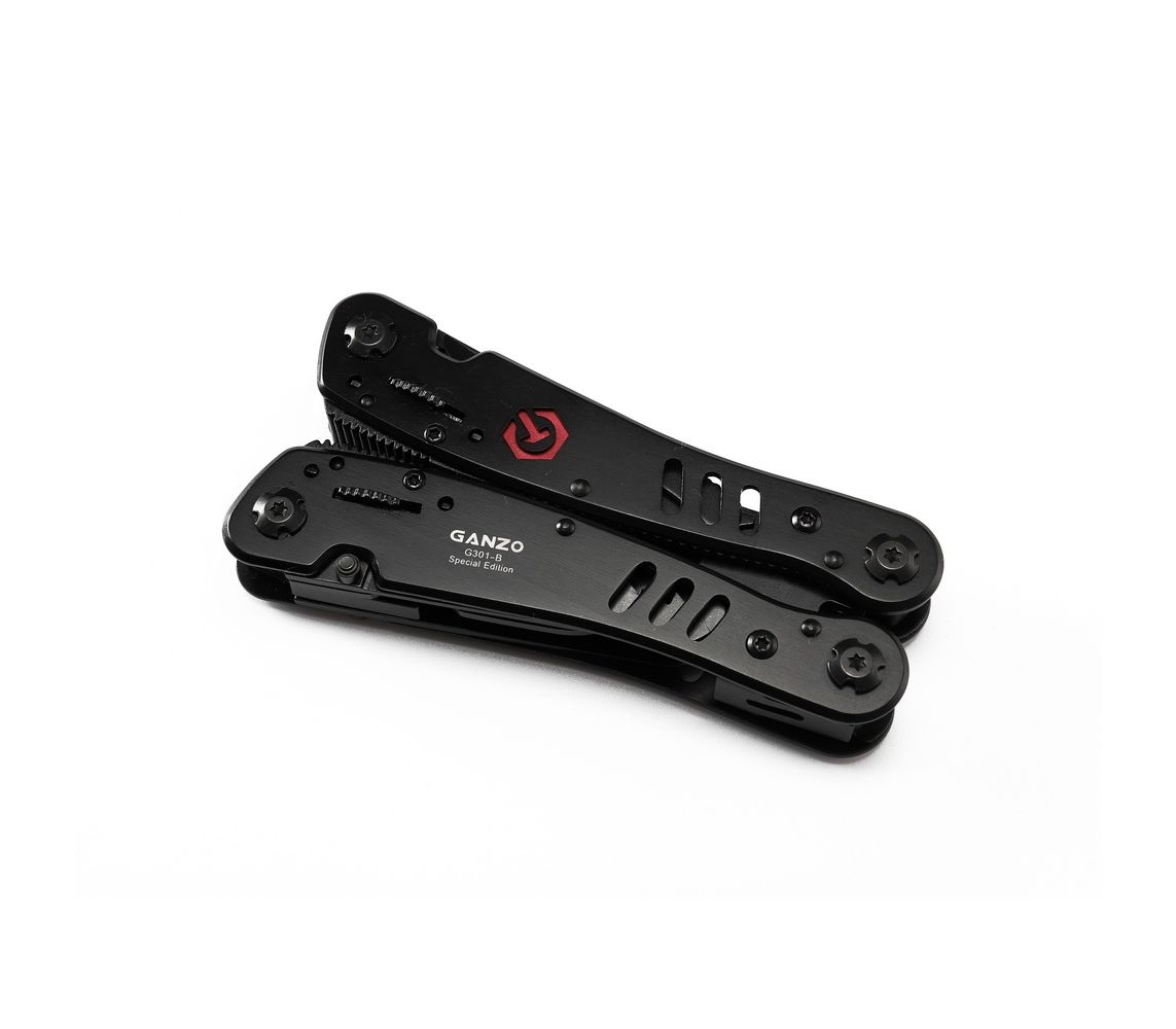 Зручний повнорозмірний мультитул G301-від компанії Ganzo. Великий набір інструментів дозволяє використовувати модель G301-В для повноцінного ремонту різноманітної техніки. В комплект мультитула G301-В входять наступні інструменти: підпружинені плоскогубці з кусачками, два леза, одне з яких має серейторну заточку, дві плоских викрутки різного розміру, пилу по дереву, ножиці, зенковку, подовжувач для адаптера, консервний ніж. Також в комплект даної моделі входити касета з адаптером та набір різноманітних біт (3 плоских викрутки, 3 хрестових викрутки, 3 шестигранних ключа найбільш популярних розмірів).