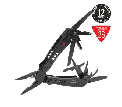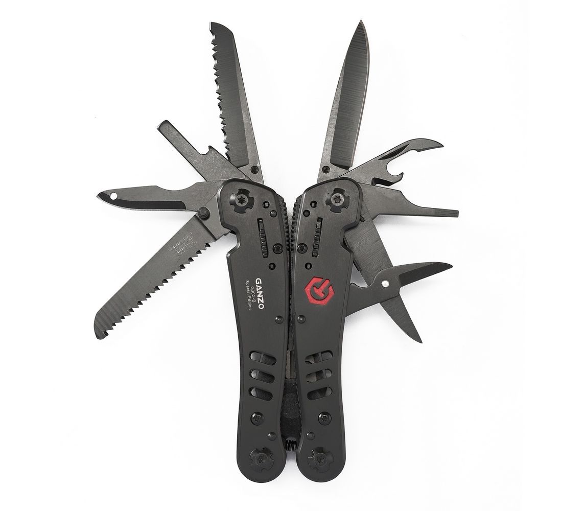 Зручний повнорозмірний мультитул G302-від компанії Ganzo. Великий набір інструментів дозволяє використовувати модель G302-В для повноцінного ремонту різноманітної техніки. В комплект мультитула G301-В входять наступні інструменти: підпружинені плоскогубці з кусачками, два леза, одне з яких має серейторну заточку, дві плоских викрутки різного розміру, пилу по дереву, ножиці і ін