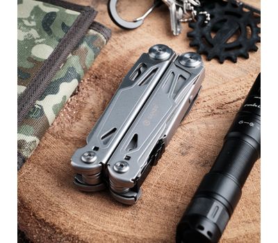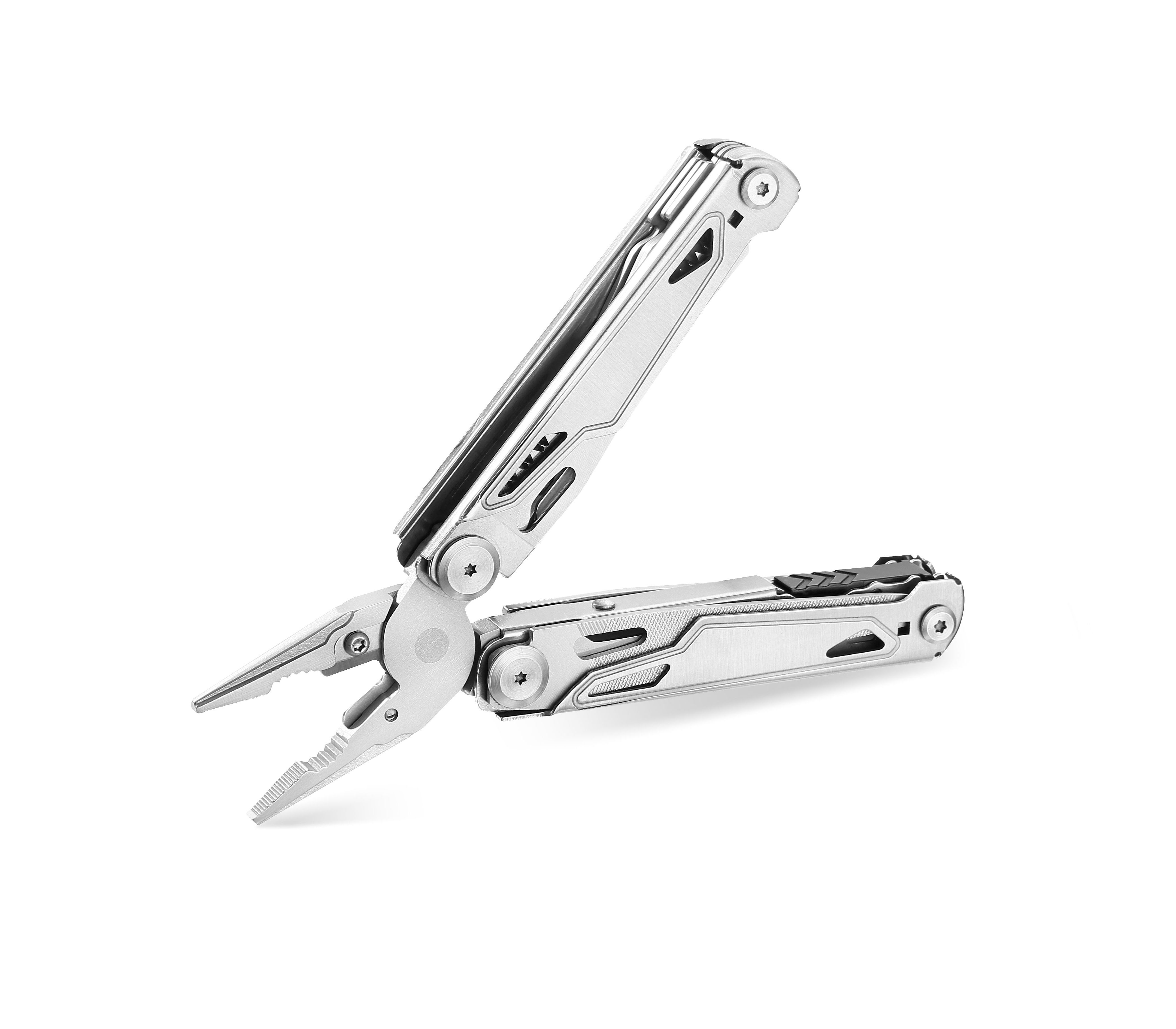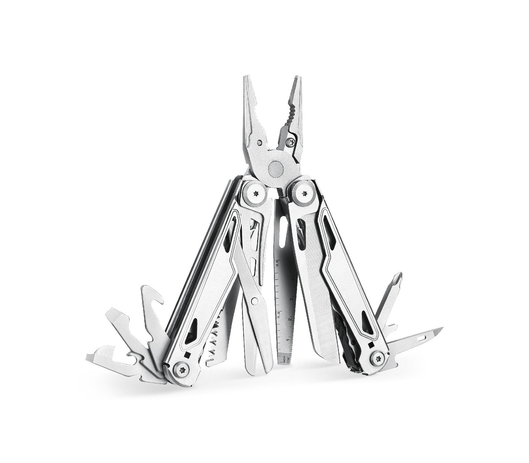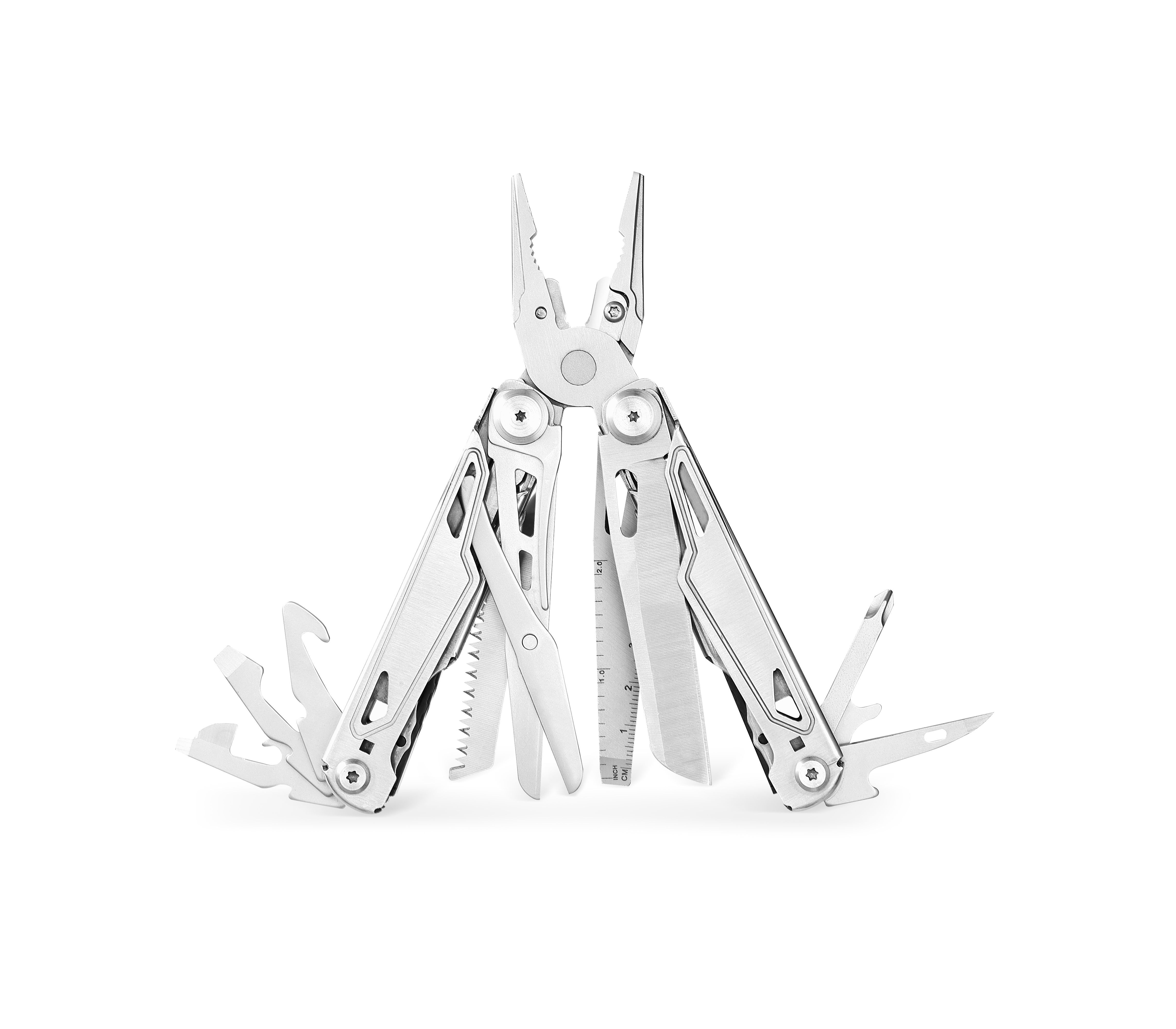 У складаних руківʼях приховано багато інших елементів різних габаритів, які легко підчіплюються пальцем і розкриваються до фіксації в робочому положенні. Серед них є клинок з прямим заточуванням, серейторна пилка, ножиці, напилок і лінійка, відкривачки для пляшок і консервних банок, одна хрестоподібна та дві плоскі викрутки, інструмент для зачищення проводів, стропоріз, шило. Кожен елемент ретельно продуманий і підігнаний таким чином, щоб забезпечити оптимальну функціональність та надійну фіксацію у відкритому та закритому положеннях.