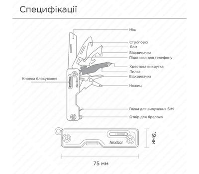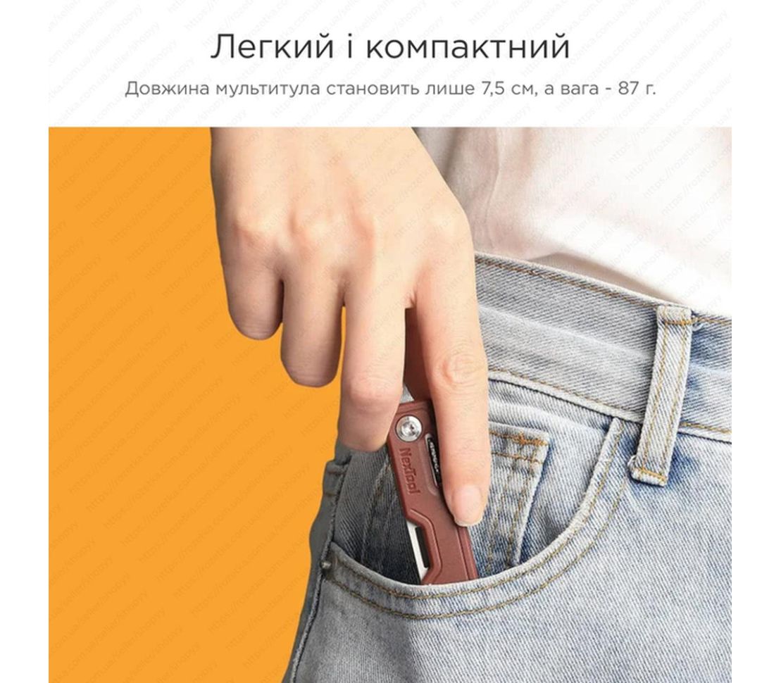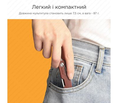 Завдяки мінімальній вазі — лише 88 г — мультитул від NexTool підходить для носіння на ключах або в кишені, забезпечуючи швидкий доступ до необхідних інструментів у повсякденних та екстремальних ситуаціях.