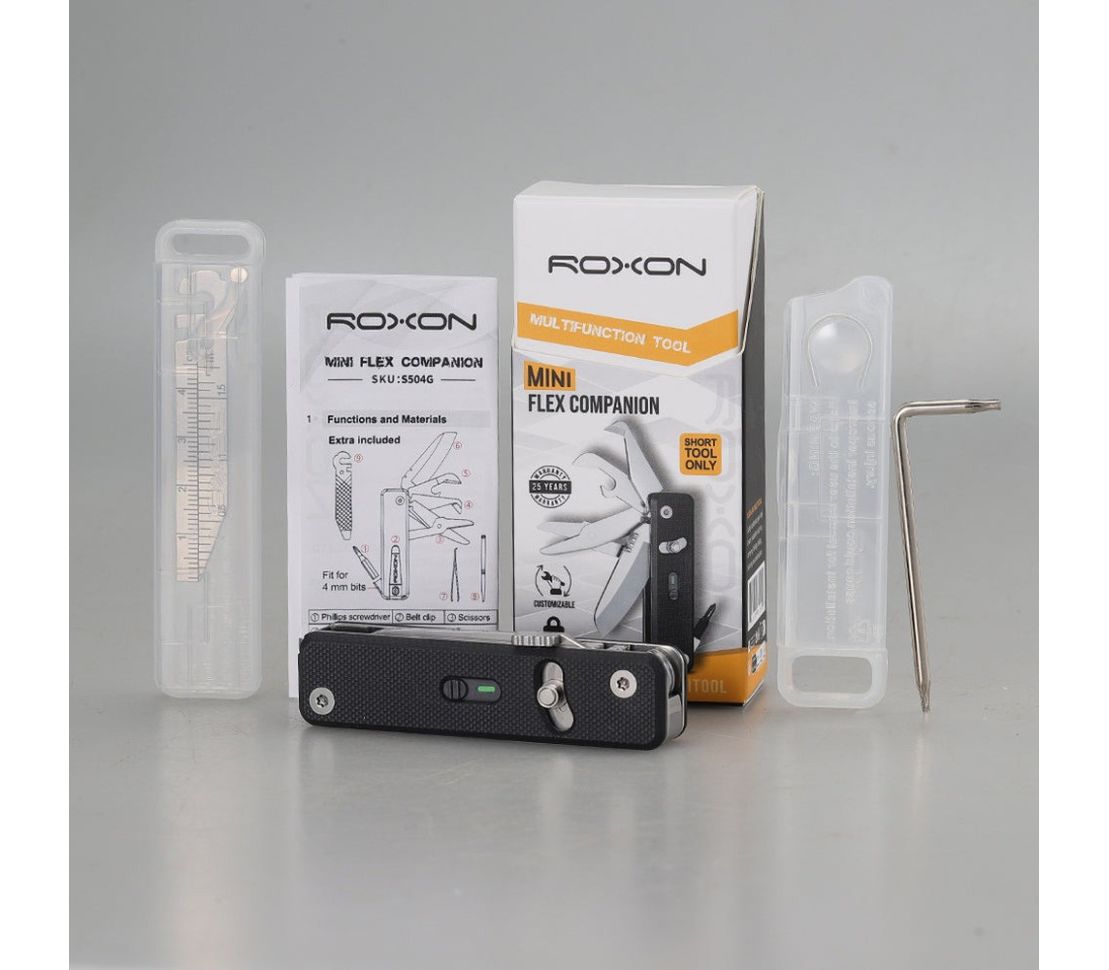 Головна перевага моделі — модульна система. Окремі елементи можна змінювати, щоб зібрати власний набір інструментів та оптимізувати мультитул під особисті потреби. Елементи також сумісні з повноформатним мультитулом Roxon Flex (за винятком адаптера для біт 1/4"), що робить Mini Flex Companion частиною великої універсальної системи інструментів.