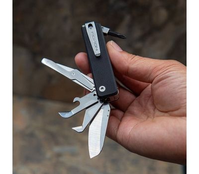 Мультитул має механізм фіксації, який блокує відкриті інструменти та виключає ймовірність випадкового складання під час роботи. Шорстка поверхня руківʼя G10 запобігає ковзанню у руці та гарантує надійний хват навіть при вологій долоні.