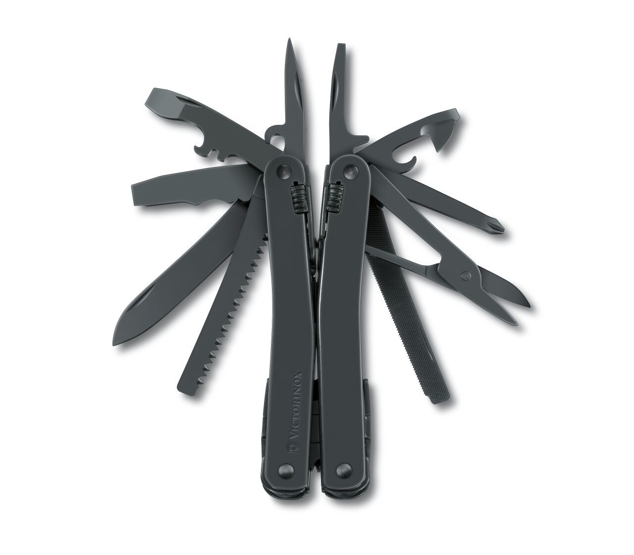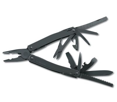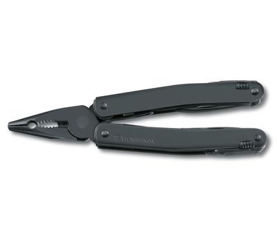Мультитул Swiss Tool Spirit від бренду Victorinox візуально схожий на пасатижі з ручками-лінійками. Але насправді ці ручки служать піхвами для великої кількості інструментів: великого леза, відкривалок, пили по дереву, напилка, ножівки по металу, викруток та багато чого іншого.