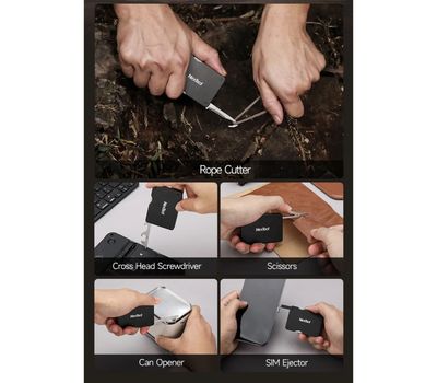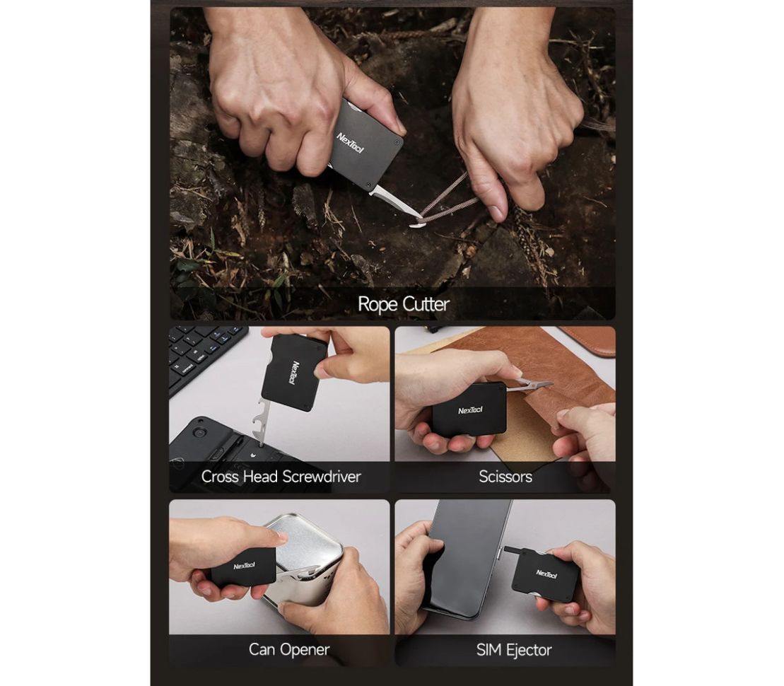 Вбудовані елементи виконують понад 10 функцій. Серед них: ніж із прямим заточуванням, стропоріз, ножиці, плоска та хрестова викрутки, відкривачки для банок та пляшок, SIM-інжектор, пилка для нігтів. Всі інструменти компактно складаються в корпус, не заважаючи під час носіння.