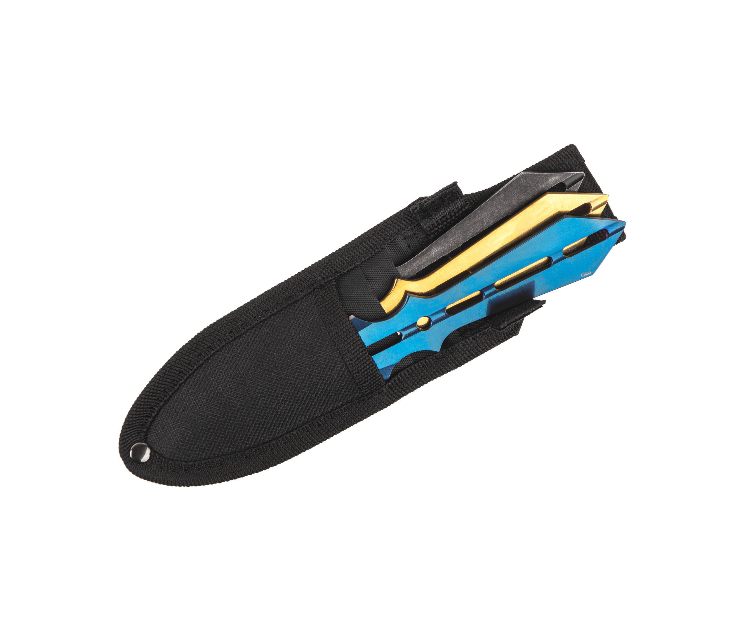 Набір метальних ножів. Загальна довжина одного становить 180 мм. В чохлі.