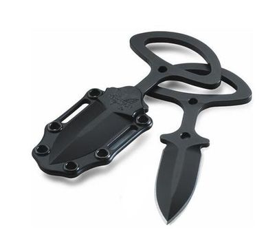 Ніж Benchmade CBK має незвичайний дизайн і зручний у використанні. Клинок кинжального тичкового типу виконаний з високоякісної сталі 440C і вкритий щільним чорним покриттям. Оболонка рукояті виконана з термопластика і має елемент захоплення для пальця, що в свою чергу спрощує роботу з ножем, підвищуючи його ефективність і зменшуючи час, що витрачається на вилучення ножа з місця зберігання. В екстремальних ситуаціях це грає важливу роль для захисту свого життя. Ніж Benchmade CBK поставляється в комплекті зі зручним футляром чорного кольору, на корпусі якого є кліпса для носіння на поясі. Крім того, такий тичковий ніж можна кріпити також і до черевика, розширюючи таким чином сферу застосування та звільняючи місце на розвантаженні. Сталь 440С - досить тверда сталь, ножі з неї відмінно ріжуть і довго не тупляться. Це дуже хороший матеріал для клинків при правильній обробці. З 440С роблять масу ножів і в Європі, і в Америці. Досить довгий час ця сталь вважалася кращою для ножів, поки на зміну їй не прийшли нові дорогі високотехнологічні сплави. Але до сих пір це дуже популярний і гідний ножовий матеріал.