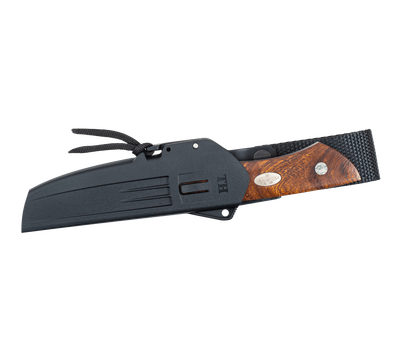 Рукоятка виконана з міцної деревини аризонського залізного дерева, що має назву Ironwood. Арізонське залізне дерево має густину 1,2 кг/дм³, за рахунок чого може утримуватися на поверхні води та не тонути. Волокна дерева здатні відбивати світло і зовні нагадує бурштин. Виходить щось на зразок 3D ефекту. Рукоятка прикрашена медальйоном, на якому зображені три корони та назва компанії, ця особливість пов'язана з тим, що виробник поставляє свої унікальні ножі королівському двору Швеції. Винятковий дизайн, зручність та престиж мисливського ножа, це далеко не всі переваги колекційної серії Taiga Forester. Ножі серії Taiga Forester цілком функціональні та готові стати незамінними помічниками лісникам, мандрівникам та досвідченим мисливцям.