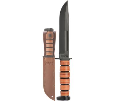 З 1940-х років бойовий / службовий ніж Ka-Bar USMC 7 "був надійним супутником солдатів, морських піхотинців і моряків. Тепер, завдяки більш ніж півстолітнім традиціям, в поєднанні з сучасними інструментами і конструкцією, цей ніж готовий до наступних 50 років служби. Сталь 1095 Cro-Van з впізнаваним clip-point клинком ретельно відшліфована і піддана термообробці, щоб кожен ніж був міцним і довговічним, при цьому залишаючись легким для заточування до бритви. Ручки з Black Kraton G мають знайому овальну форму, їх зручно тримати в руці, забезпечуючи при цьому відмінне зчеплення і контроль. Бойовий / універсальний ніж Ka-Bar, надійно розміщений між захистом для пальців і держаком, залишається в руці незалежно від того, чи перебуваєте ви в ближньому бою або прокладаєте шлях крізь густу рослинність. Піхви з коричневої шкіри додають естетичної привабливості ножу з надійним ременем для перенесення.