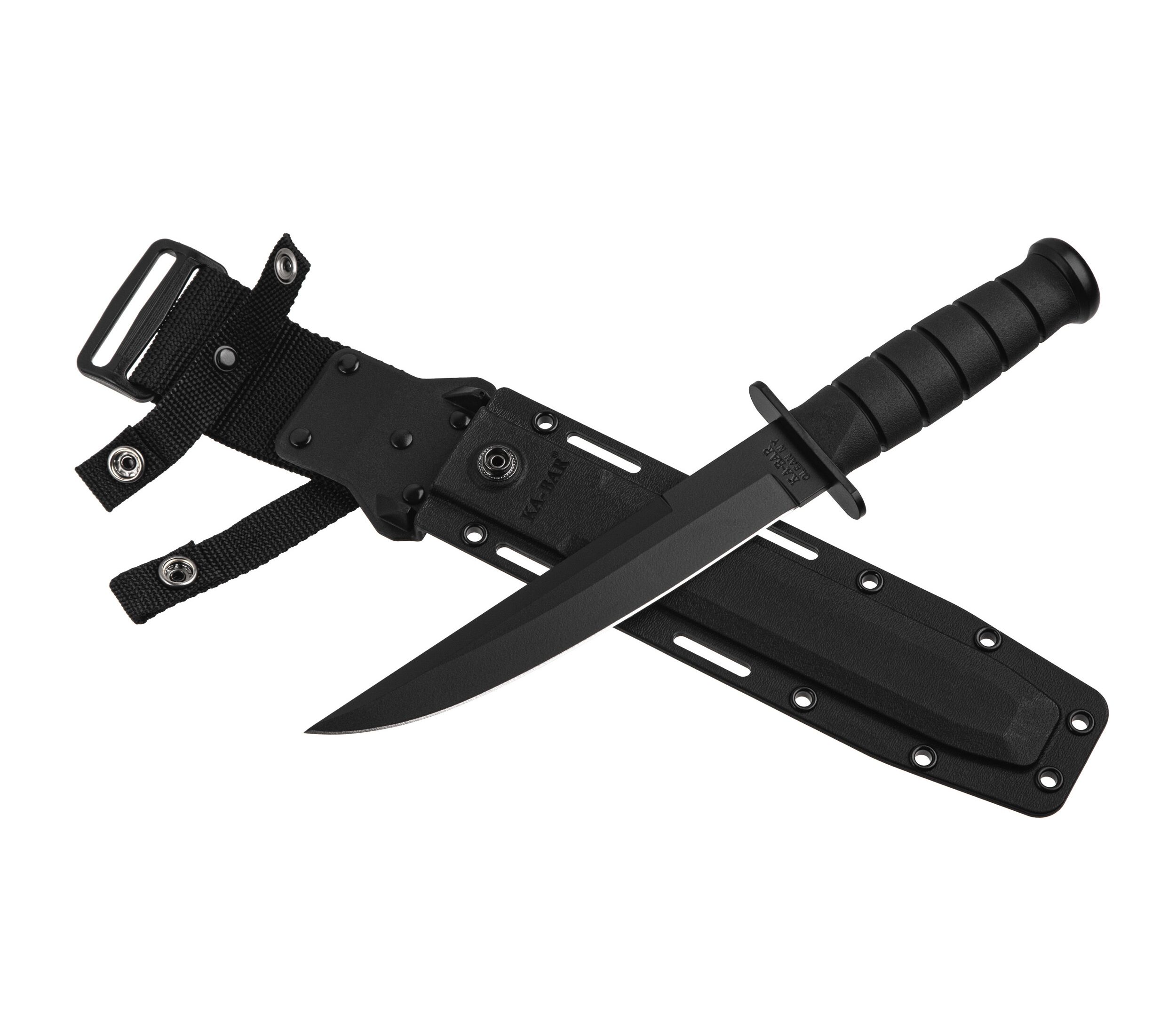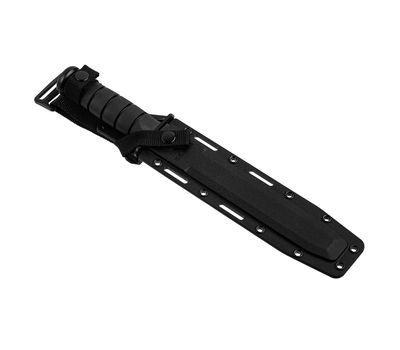 Сталь 1095 Cro-Van з агресивним модифікованим клинком формату танто ретельно відшліфована і піддана термообробці, щоб кожен ніж був міцним і довговічним, залишаючись при цьому легким для заточування до бритви. Чорні ручки з Kraton G мають знайому овальну форму, зручні в руці, забезпечуючи при цьому відмінне зчеплення і контроль. Бойовий / універсальний ніж Ka-Bar, надійно розміщений між захистом для пальців і держаком, залишається в руці незалежно від того, чи перебуваєте ви в ближньому бою або прокладаєте шлях крізь густу рослинність. Чорна нейлонова оболонка, виготовлена методом лиття під тиском, стійка до розтріскування, деформації або сколів, а завдяки кільком MOLLE-сумісним точкам кріплення і кріплення, носити бойовий / універсальний ніж в польових умовах безпечно і надійно.