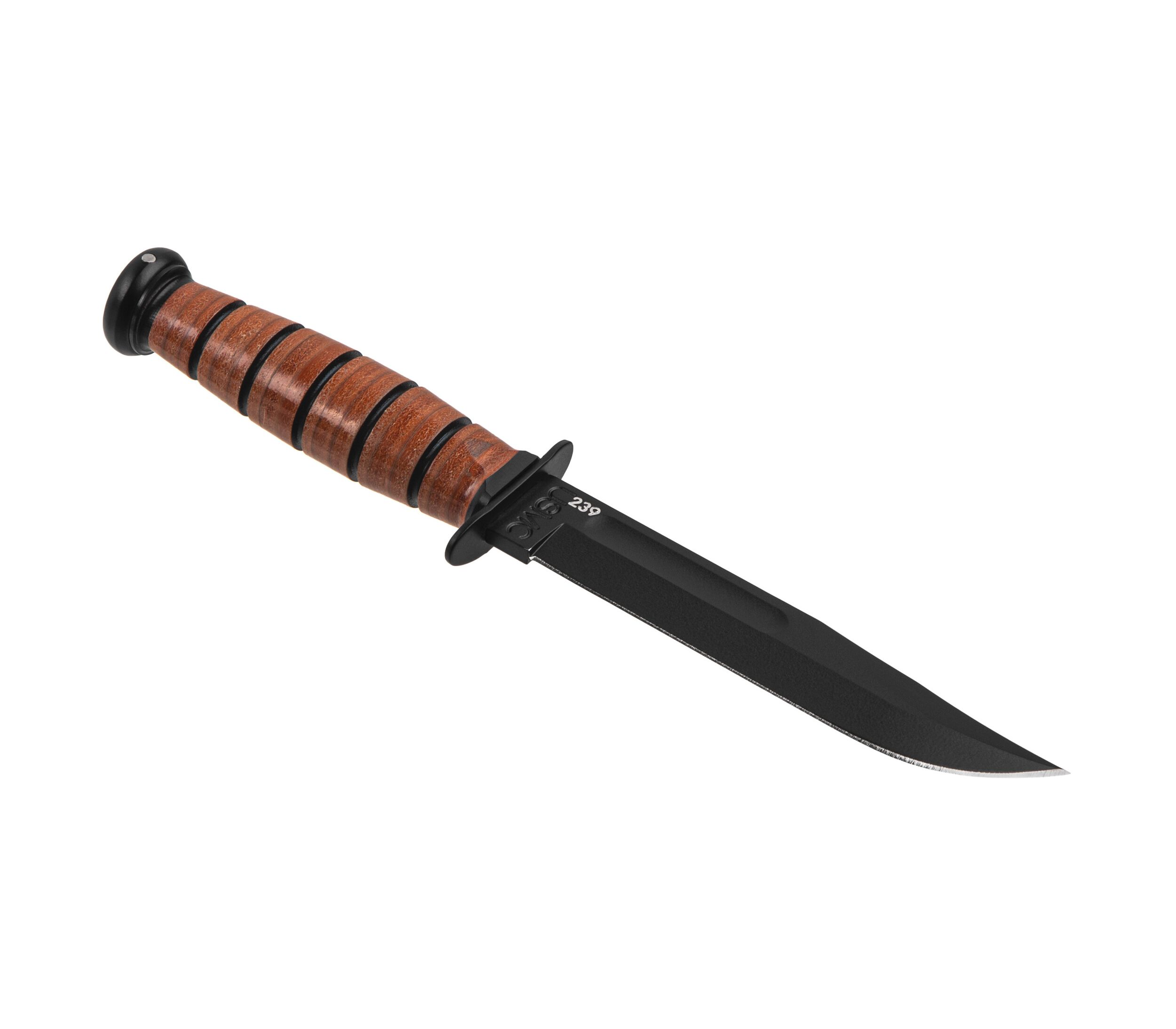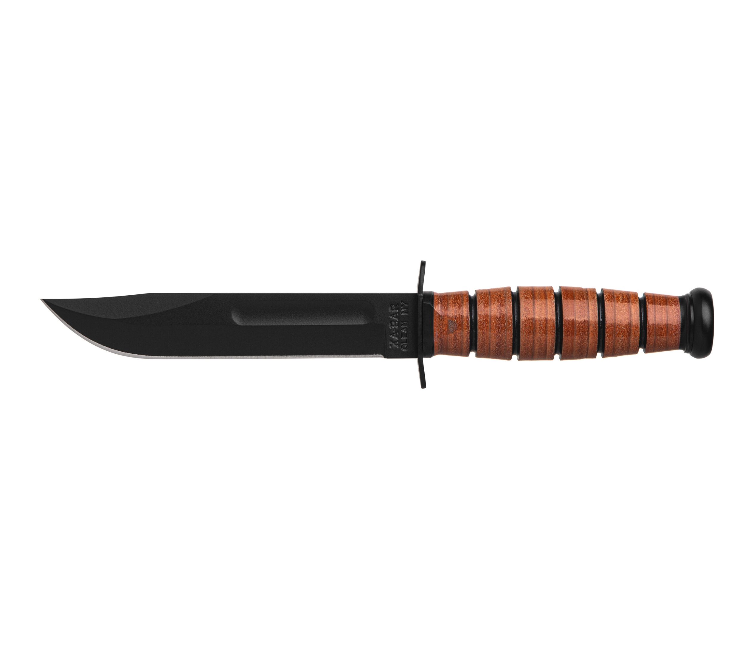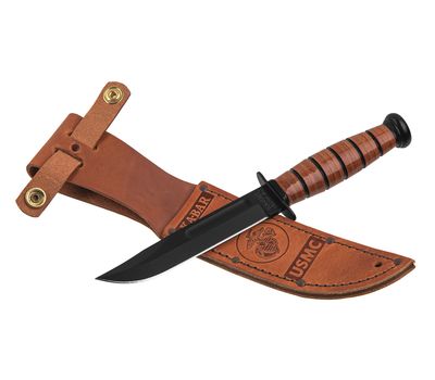 З 1940-х років бойовий / службовий ніж Ka-Bar USMC 5 "був надійним супутником солдатів, морських піхотинців і моряків. Тепер, завдяки більш ніж півстолітнім традиціям, в поєднанні з сучасними інструментами і конструкцією, цей ніж готовий до наступних 50 років служби. Сталь 1095 Cro-Van з впізнаваним clip-point клинком ретельно відшліфована і піддана термообробці, щоб кожен ніж був міцним і довговічним, при цьому залишаючись легким для заточування до бритви. Ручки з Black Kraton G мають знайому овальну форму, їх зручно тримати в руці, забезпечуючи при цьому відмінне зчеплення і контроль. Бойовий / універсальний ніж Ka-Bar, надійно розміщений між захистом для пальців і держаком, залишається в руці незалежно від того, чи перебуваєте ви в ближньому бою або прокладаєте шлях крізь густу рослинність. Піхви з коричневої шкіри додають естетичної привабливості ножу з надійним ременем для перенесення.