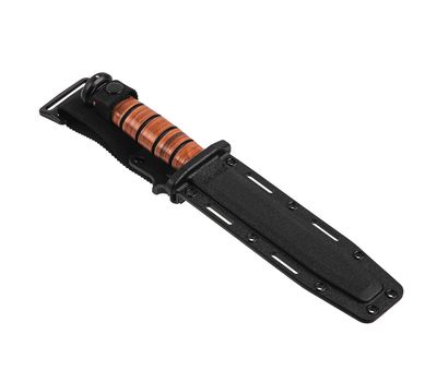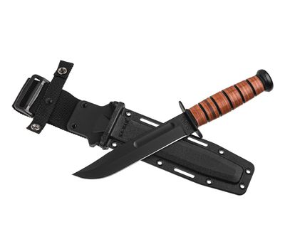 З 1940-х років бойовий / службовий ніж Ka-Bar USMC 7 "був надійним супутником солдатів, морських піхотинців і моряків. Тепер, завдяки більш ніж півстолітнім традиціям, в поєднанні з сучасними інструментами і конструкцією, цей ніж готовий до наступних 50 років служби. Сталь 1095 Cro-Van з впізнаваним clip-point клинком ретельно відшліфована і піддана термообробці, щоб кожен ніж був міцним і довговічним, при цьому залишаючись легким для заточування до бритви. Ручки з Black Kraton G мають знайому овальну форму, їх зручно тримати в руці, забезпечуючи при цьому відмінне зчеплення і контроль. Бойовий / універсальний ніж Ka-Bar, надійно розміщений між захистом для пальців і держаком, залишається в руці незалежно від того, чи перебуваєте ви в ближньому бою або прокладаєте шлях крізь густу рослинність. Піхви з утилітарного міцного пластику, сумісні з системою Molle.