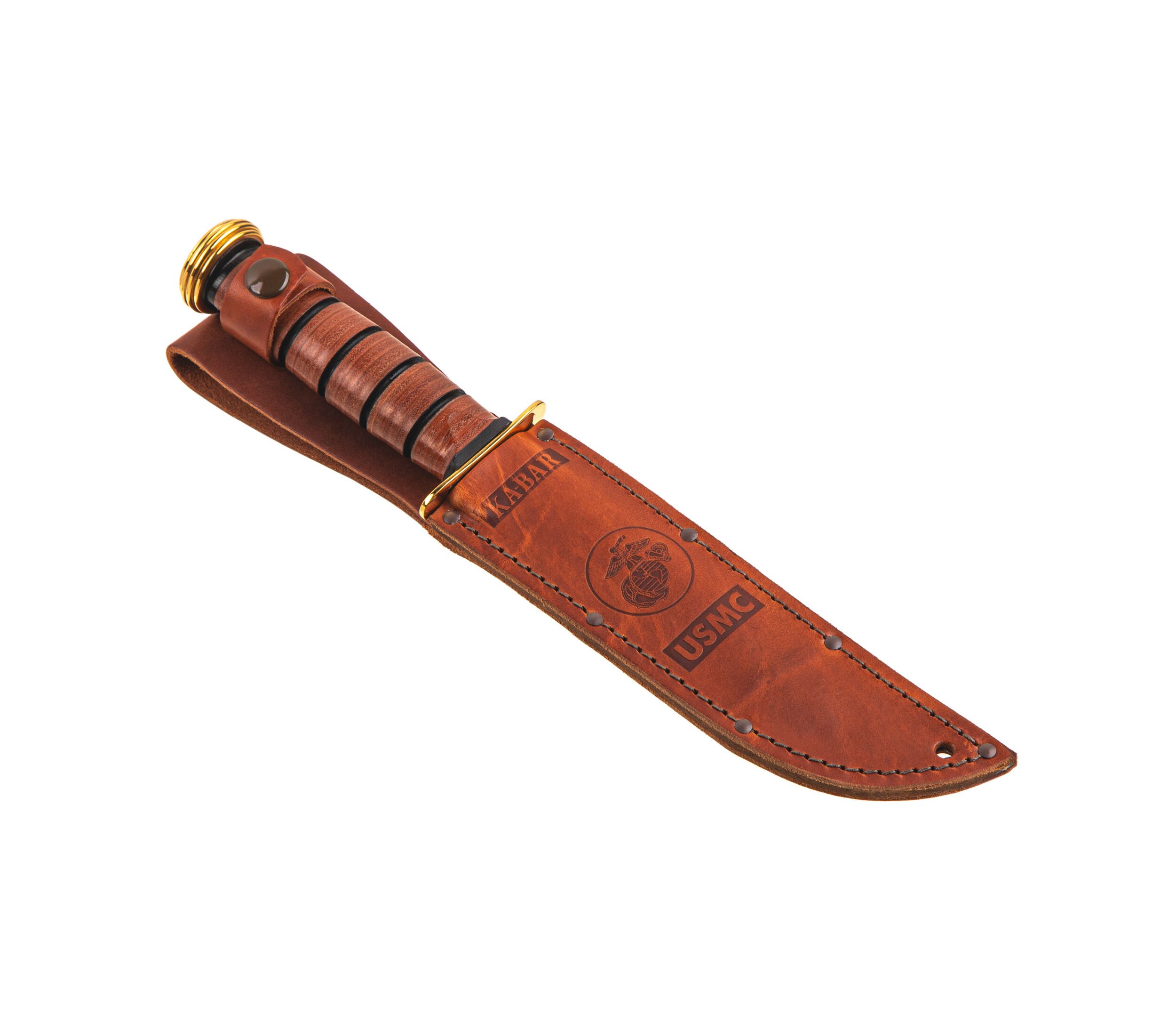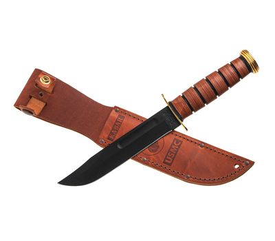 З 1940-х років бойовий / службовий ніж Ka-Bar USMC 7 "був надійним супутником солдатів, морських піхотинців і моряків. Тепер, завдяки більш ніж півстолітнім традиціям, в поєднанні з сучасними інструментами і конструкцією, цей ніж готовий до наступних 50 років служби. Сталь 1095 Cro-Van з впізнаваним clip-point клинком ретельно відшліфована і піддана термообробці, щоб кожен ніж був міцним і довговічним, при цьому залишаючись легким для заточування до бритви. Ручки з Black Kraton G мають знайому овальну форму, їх зручно тримати в руці, забезпечуючи при цьому відмінне зчеплення і контроль. Бойовий / універсальний ніж Ka-Bar, надійно розміщений між захистом для пальців і держаком, залишається в руці незалежно від того, чи перебуваєте ви в ближньому бою або прокладаєте шлях крізь густу рослинність. Піхви з коричневої шкіри додають естетичної привабливості ножу з надійним ременем для перенесення.