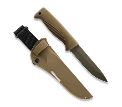 Ніж Peltonen M07, покриття cerakote FDE, coyote, coyote композитний чохол