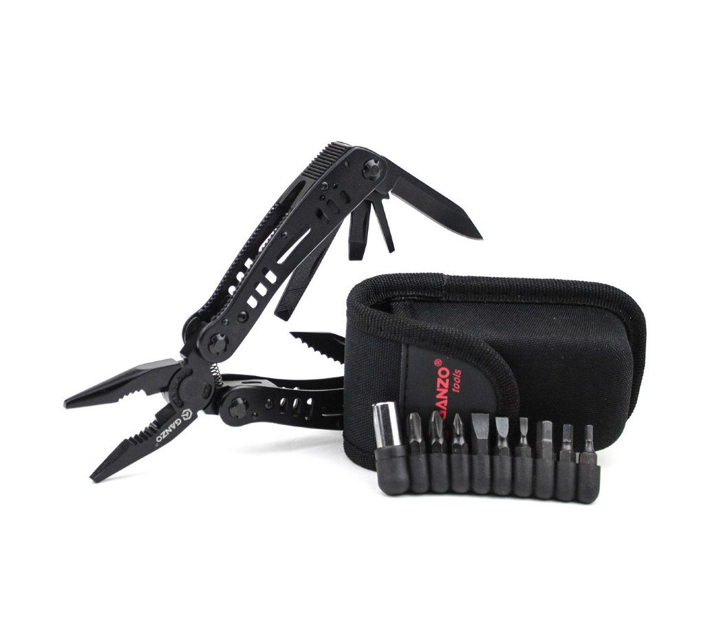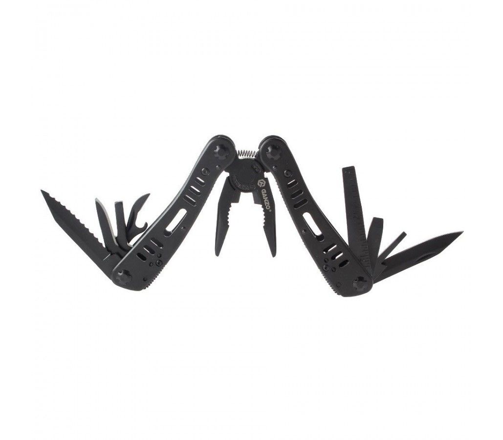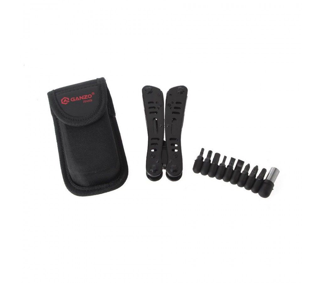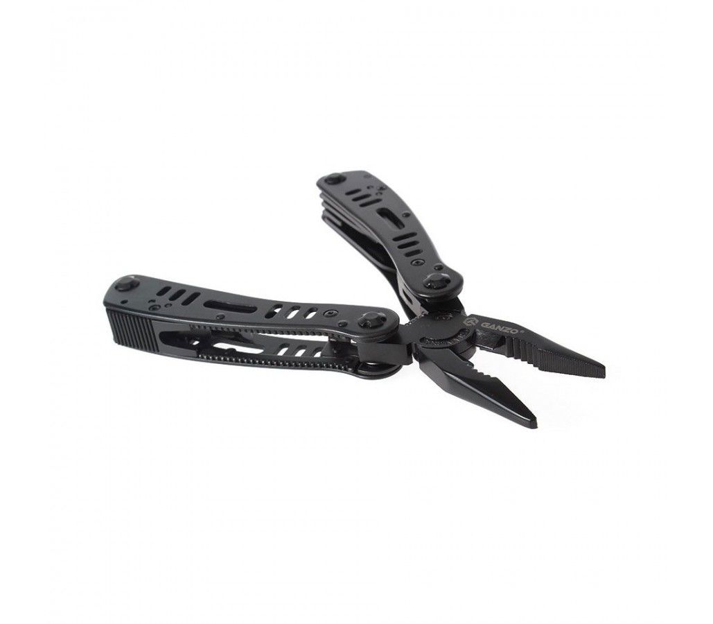 Мультитул Ganzo G103 вполне оправдывает звание «карманной мастерской». При весе 248 грамм и длине в сложенном виде всего 10,5 см, он обладает 22 различными функциями. Этот инструмент поможет вам устранить неисправности велосипеда, туристического снаряжения, экипировки охотника или рыбака. Да и в домашнем быту он пригодится не единожды. Одно из основных преимуществ такого мультитула — наличие полноценных плоскогубцев с мощными подпружиненными губками, встроенными кусачками для проволоки и ребристым захватом для предметов круглой формы. Помимо того, в пустых изнутри рукоятках мультитула размещаются открывалка для бутылок, две плоские и крестовидная отвертки, шило (его же можно использовать в качестве маленького ножа), линейка, на обратной стороне которой — напильник, два клинка (гладкий и с серрейторной заточкой). Также имеется держатель для бит с квадратным сечением. Сами же биты прилагаются в отдельном органайзере: 8 сменных насадок и переходник.