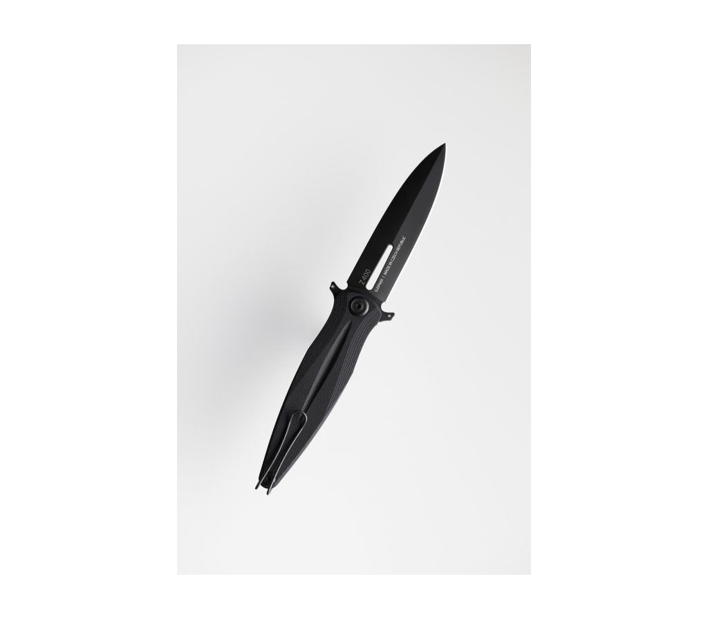 Чисті лінії кинджалоподібного симетричного клинка з одностороннім заточуванням з міцної на злам сталі Sleipner в поєднанні з шорсткою композитною рукояткою дають «чотирьохсотому» все, що потрібно, щоб допомогти вам у ваших щоденних пригоди містом. Відкривається клинок з фліпера, на кінці якого є мініатюрна люмінесцентна точка. Зібраний ніж на фторопластових шайбах і великому осьовому гвинті, що дозволяє не сумніватися в якості збірки. Рукоятка порожниста на бонках, однак при цьому зовсім не тонка. Люфти відсутні. Тонка, але міцна кліпса для глибокого носіння означає, що Z400 ніколи не приверне до себе непотрібної уваги. Однак, на увагу він заслуговує. Мало який з європейських складних ножів досяг такого ідеального кинджалоподібного профілю при односторонньому заточуванні. Оригінальність клинку додає фрезерований дол по центральній осі. При цьому він не робить клинок крихким.