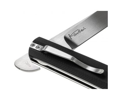 Японський виробник ножів Kansei Matsuno - майстер своєї справи, і його дизайни, безсумнівно, мають свій власний стиль. Вміле поєднання елементів японського стилю з рисами кишенькового ножа сучасного джентльмена відразу вразило нас. Тонка конструкція і легка конструкція Boker Plus Wasabi разом з прямим дизайном і класичним японським лезом створюють елегантний ніж для повсякденного життя. Кульковий підшипник лезо відкривається через передній плавник і залишається відкритим, як Slipjoint свого власним стопорного кульки. Випробуваний і перевірений сплав 440C використовується для леза. Ручка з пластинами з нержавіючої сталі і фрезерованим затискачем.