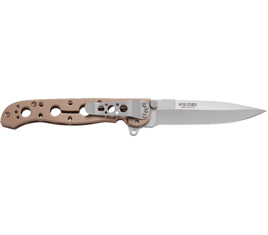 M16® - найпопулярніша серія з коли-небудь створених брендом CRKT®. Протягом багатьох років вони віддавали належне покійному і шанованому Кіту Карсону, розширюючи його спадщину новими ітераціями. Сьогодні компанія представляє M16®, прикрашений бронзовим нітридом титану, і перетворює тактичний складаний ніж в аксесуар повсякденного носіння. Покійний Кіт Карсон розробив цей і багато інших новаторські ножі в своєму магазині в Вайн-Гроув, Кентуккі. Постійне спадщина Кіта пов'язано з його статусом старшого сержанта і його висококласним членством в ножових Залі Слави. M16®-03 зберігає все, що нам подобається в лінійці тактичних складничків Карсона, і перетворює її в повсякденний ніж. Універсальний клинок списоподібного форм-фактора виготовлений з високоякісної шведської сталі Sandvik 12C27 ™ для відмінного утримання кромки. У нього такий же надійний і впізнаваний дизайн ручки, але він покритий бронзовою нітридом титану. Цим новим перевиданням M16® CRKT найкращим чином вшановує легенду.