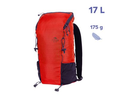 Ультралегкий рюкзак, який пакується в свою кишеню. Рюкзак для поїздок, радіальних сходжень, тренувань. Завдяки об’єму та формі чудово поміщається в кишеню, і в той же час вміщує в себе всі речі, необхідні під час мандрівки. Пакується через верхній вхід та зручна форма пакування речей. Кишені для пляшок, та навіска для спорядження роблять рюкзак суперуніверсальним. Сумісність з питною системою та кріплення паску дозволяє використовувати рюкзак під час довгих мандрівок чи бігу.