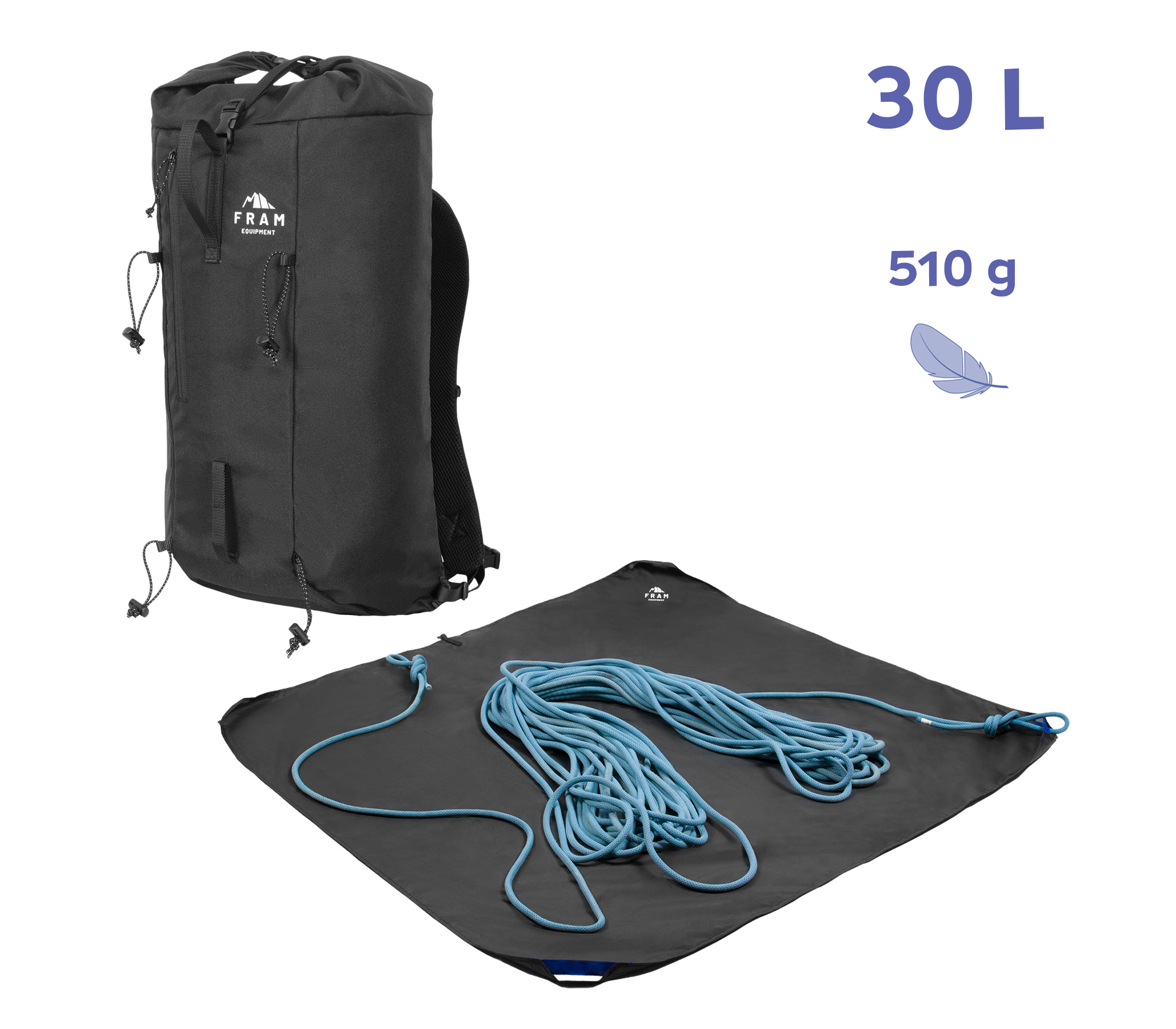 Легкий і об'ємний рюкзак для мотузки. Дозволяє вмістити мотузку 60м, дві системи, комплект відтяжок, закладки, дві каски і гайд-бук. Надмала вага і відмінна ергономічність.