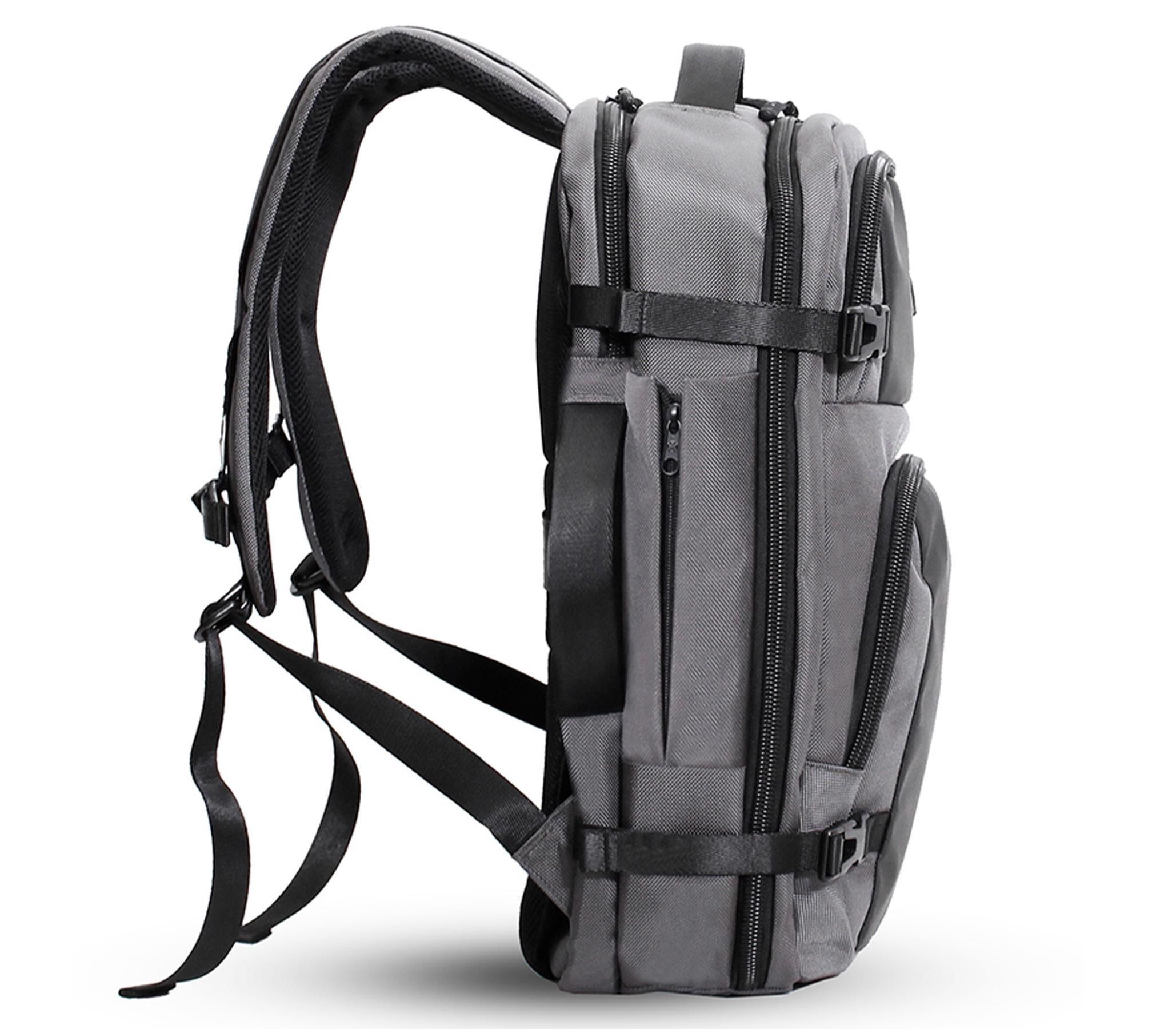 - Четыре компрессионные стяжки на фастексах, позволяющие закрепить сбоку сумки-рюкзака дополнительные вещи, либо для компрессии вещей внутри;