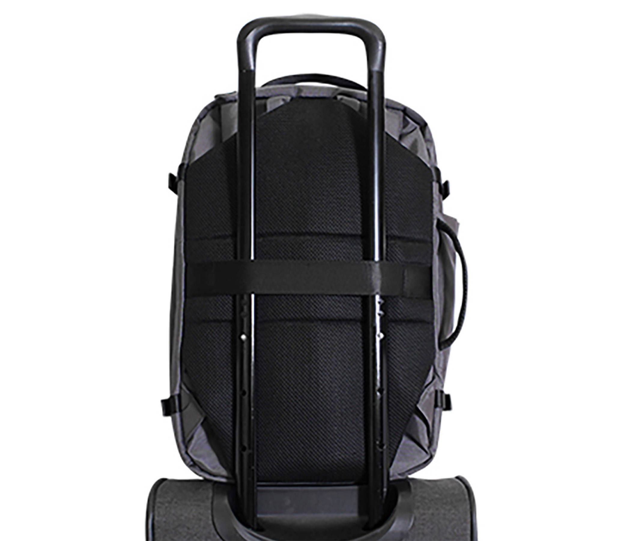 - Поперечная тесьма на спинке для фиксации сумки-рюкзака на выдвижных телескопических ручках чемоданов и сумок во время поездок;