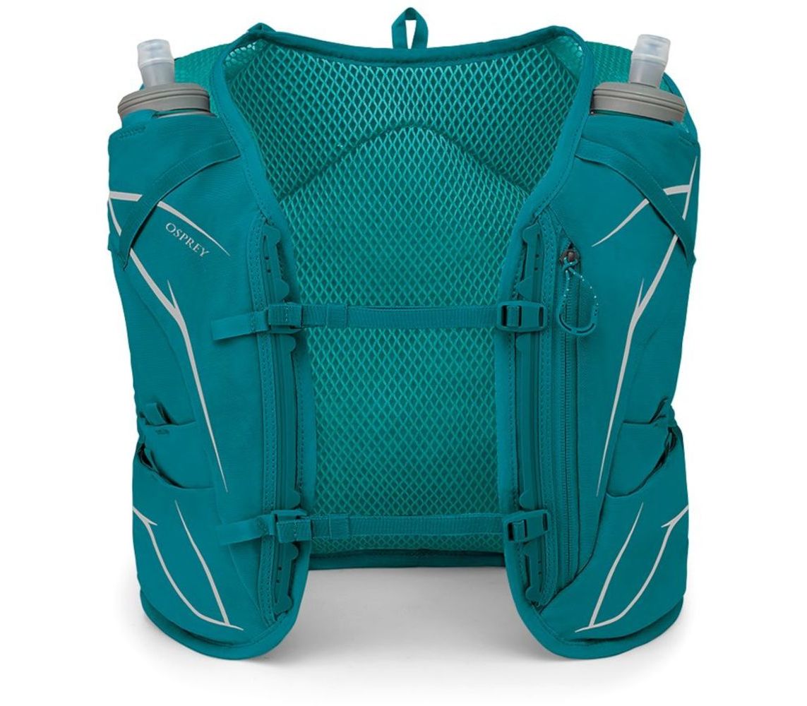 Приємність цієї моделі - у комплект входить дві фляги Hydraulics по 500 мл. Два нагрудних ремені дозволяють максимально припасувати рюкзак під себе. Є багато кишеньок для снеків, місце під трекінгові палиці, що дуже важливо під час забігів. Dyna 6 - це оновлений рюкзак, який дарує спортменці легкий доступ і комфорт.