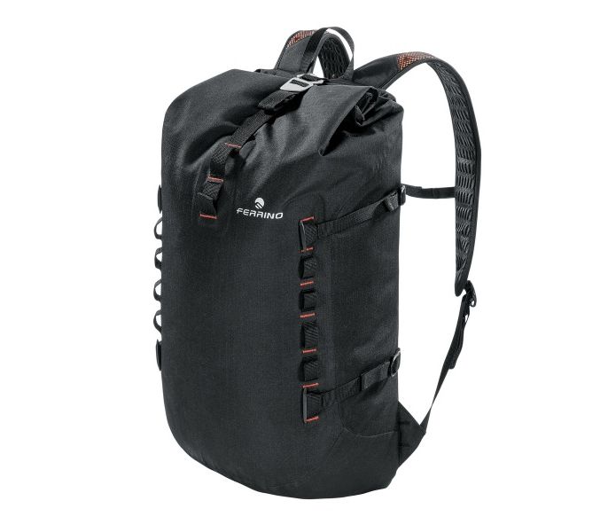 Ferrino Dry-Up 22 OutDry Black - самобытная модель рюкзака, которая в первую очередь будет интересна тем, кому необходима 100% уверенность, что их вещи будут защищена от осадков любой интенсивности, не зависимо от времени пребывания под дождем. В данном рюкзаке применена новая патентованная технология OutDry 3D, благодаря чему данная модель Ferrino имеет уровень водозащиты 10 000 мм водяного столба. Велосипедисты, бегуны, спортсмены-водники и туристы-легкоходы могут с успехом использовать этот рюкзак для активного времяпровождения. Модель главное внутреннее отделения большого объема, а также два плоских кармана в районе спины, один из которых имеет молнию с гидробарьером и фурнитуру для крепления питьевой системы. Горловина входа в основное отделение сворачивается и фиксируется алюминиевым крюком, который легко открывает и закрывает горловину. Очень интересное решение применено для боковых компрессионных стяжек, которые благодаря специальной фурнитуре могут менять свое положение по высоте или могут быть сняты с рюкзака. Такая же фурнитура применена в набедренном поясе и нагрудной стяжке, что позволяет легко их снять при необходимости. Спинка и плечевые шлейки отличаются отличной вентиляцией. В действительности рюкзак очень вместителен. А те вещи, которые не вместились внутри рюкзака, всегда могут быть закреплены снаружи на боковых или центральной компрессионных стяжках.