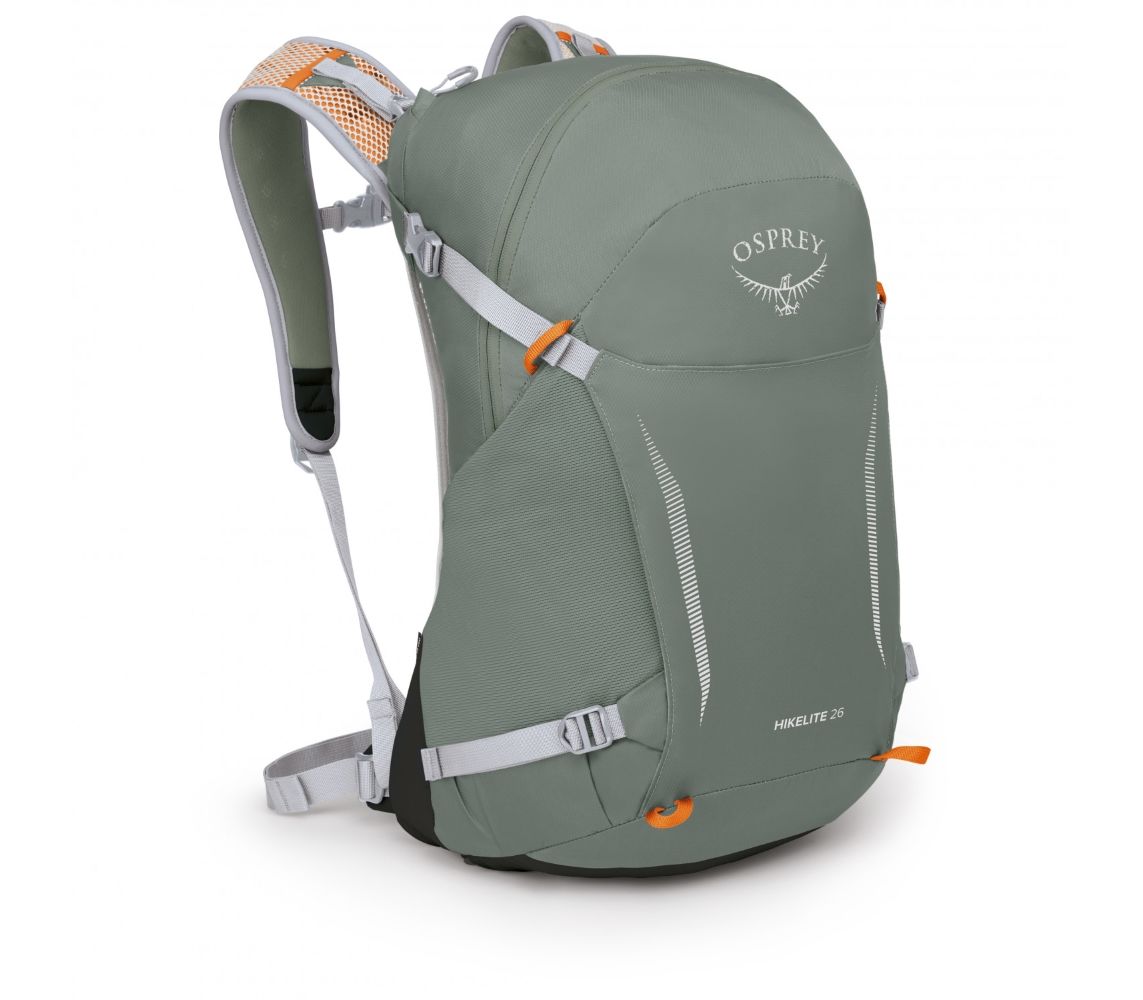 Прогулянковий рюкзак Hikelite 26 л вмістить усе необхідне для нетривалого хайкінгу та прогулянок у місті. Ви зможете помістити туди провізію, воду, карту та змінний одяг. Крім того, наплічник має DWR покриття і рейнкавер. Є кишенька для питної система гідратації об’ємом до 3 літрів. Osprey каже, що Hikelite 26 має (рекомендовану) вантажопідйомність від 2 до 11 кг. Він добре вентилюється на спині та на плечах, щоб забезпечити вам комфорт під час напружених підйомів і в теплі дні. Оснащений стабілізуючою рамою LightWire, повітропроникну сітчасту спинку та дихаючі плечові ремені з сітки.