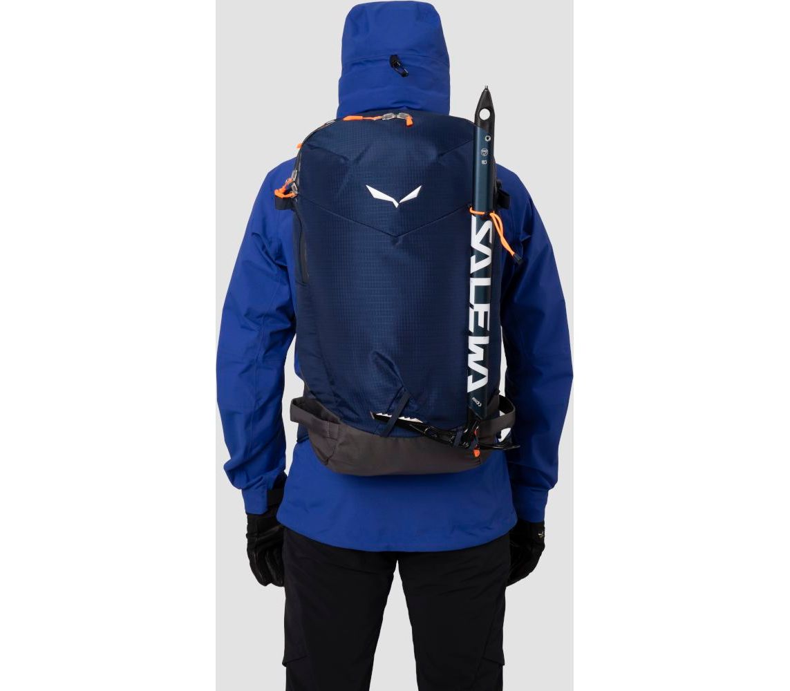 Наплечник має паралельне кріплення для лиж та лавинну захисну кишеню. Ви миттєво отримаєте доступ до лопати та зонда. Є кріплення для сноуборду, снігоступів, льодоруба. Водозахищена блискавка на всю довжину для швидкого доступу до речей. Крім того, є кишеня для цінних речей із тримачем для ключів. Виготовлений із міцного поліестеру щільністю 420D та поліефіру 750D з подвійним rip stop. З довговічною та водовідштовхувальною (DWR) обробкою, ваші речі будуть сухими у найсуворіші снігопади. Це легкий, міцний та універсальний наплечник для екстремального відпочинку