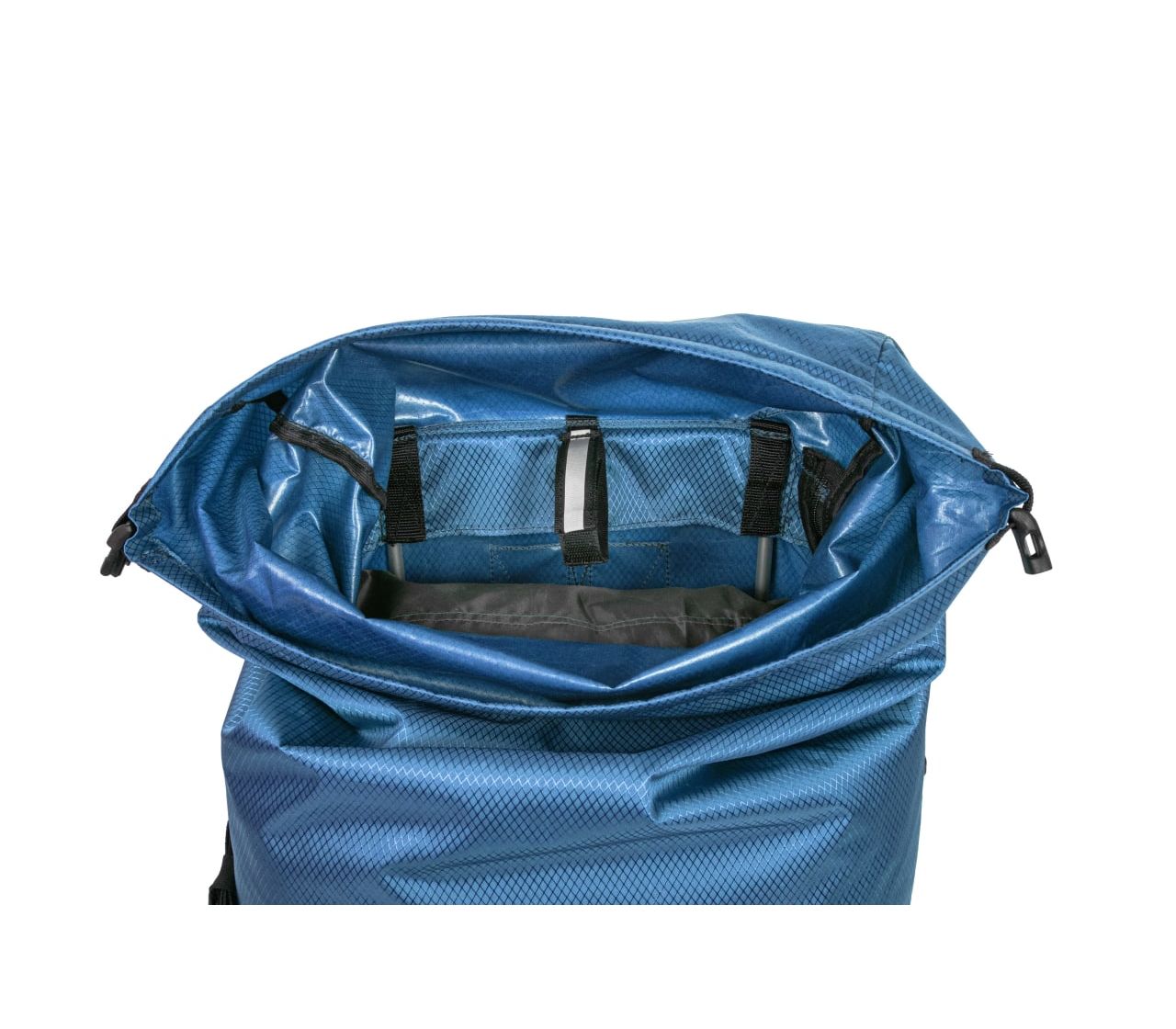 Рюкзак закривається на рол-топ. У поєднанні з бічними стяжками це дозволяє регулювати об'єм рюкзака від 30л до 50л.