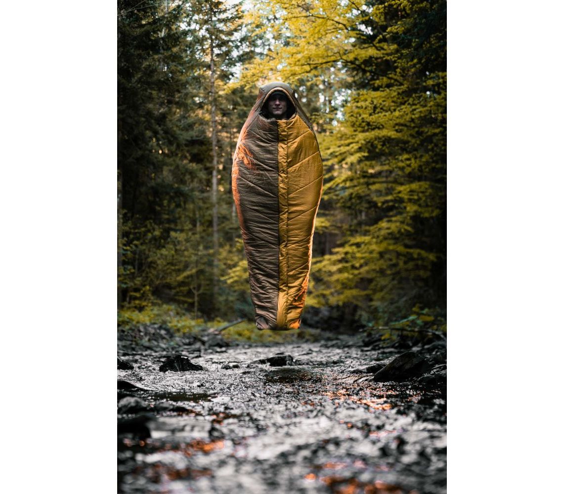 В спальнику використані матеріали японського бренду Toray. Має центральну блискавку на всю довжину і без самоблокування (роз'їжджається якщо тягнути). Завдяки цьому, в спальник легко залізти і швидко вилізти. Ще, спальником можна вкритись зверху, як ковдрою, якщо ночівля у теплих умовах. Об'ємна планка навколо шиї, на капюшоні та подвійний термозахист вздовж блискавки (ззовні і всередині) забезпечують додаткове тепло.